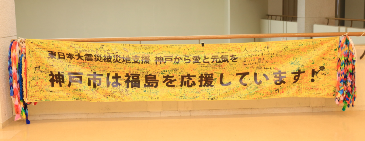 メッセージで埋まった神戸市からの応援幕