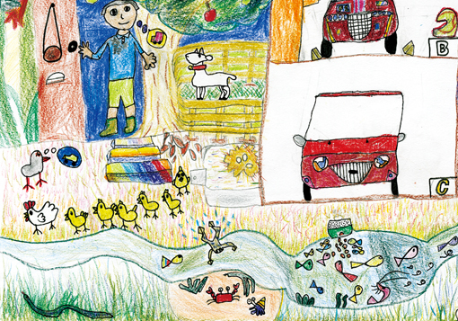 子供達の作品は、福島県在住の小学生に「大切なタカラモノ」とのテーマで、