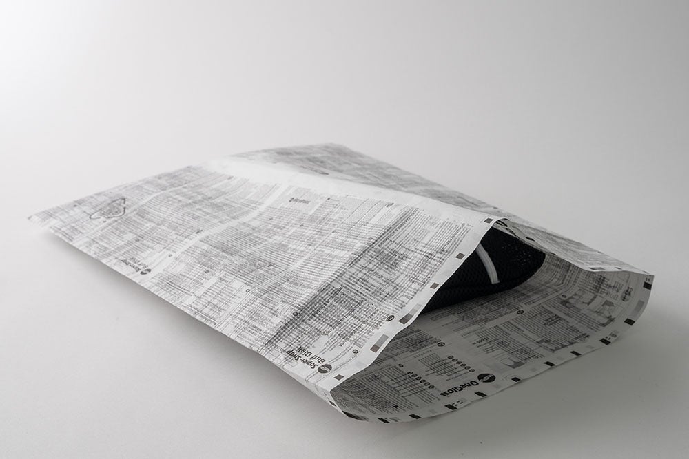 京都の印刷会社「共同印刷工業」のヤレ紙(廃棄紙)を用いて、京都の紙加工会社「山中紙工」に袋加工を依頼し完成した唯一無二の発送用紙袋