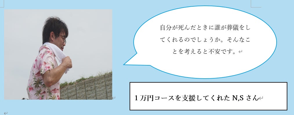 最初は研究会会員のおっさんを派遣しますが将来的には身寄りないおっさんを身寄りない方に派遣する。身寄りなしの互助グループを目指します。