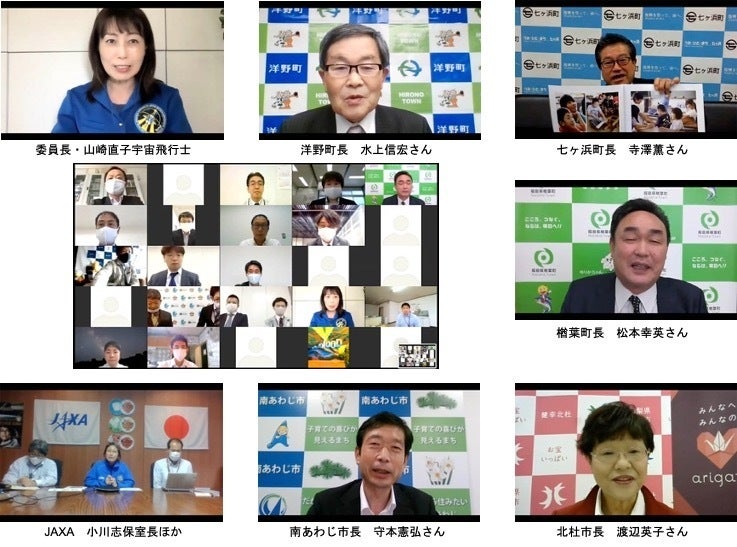 地域間の連携醸成(チームビルディング)のため、2020年10月15日、宇宙ミッションの「グランドキックオフ」としてzoom会議を開催し、実行委員長・山崎直子宇宙飛行士ほか参加する地域代表者(市町村長含む)の顔合わせ、およびスケジュールや役割分担等重要事項の情報共有を行いました。復興庁およびJAXAにも参加していただきました
