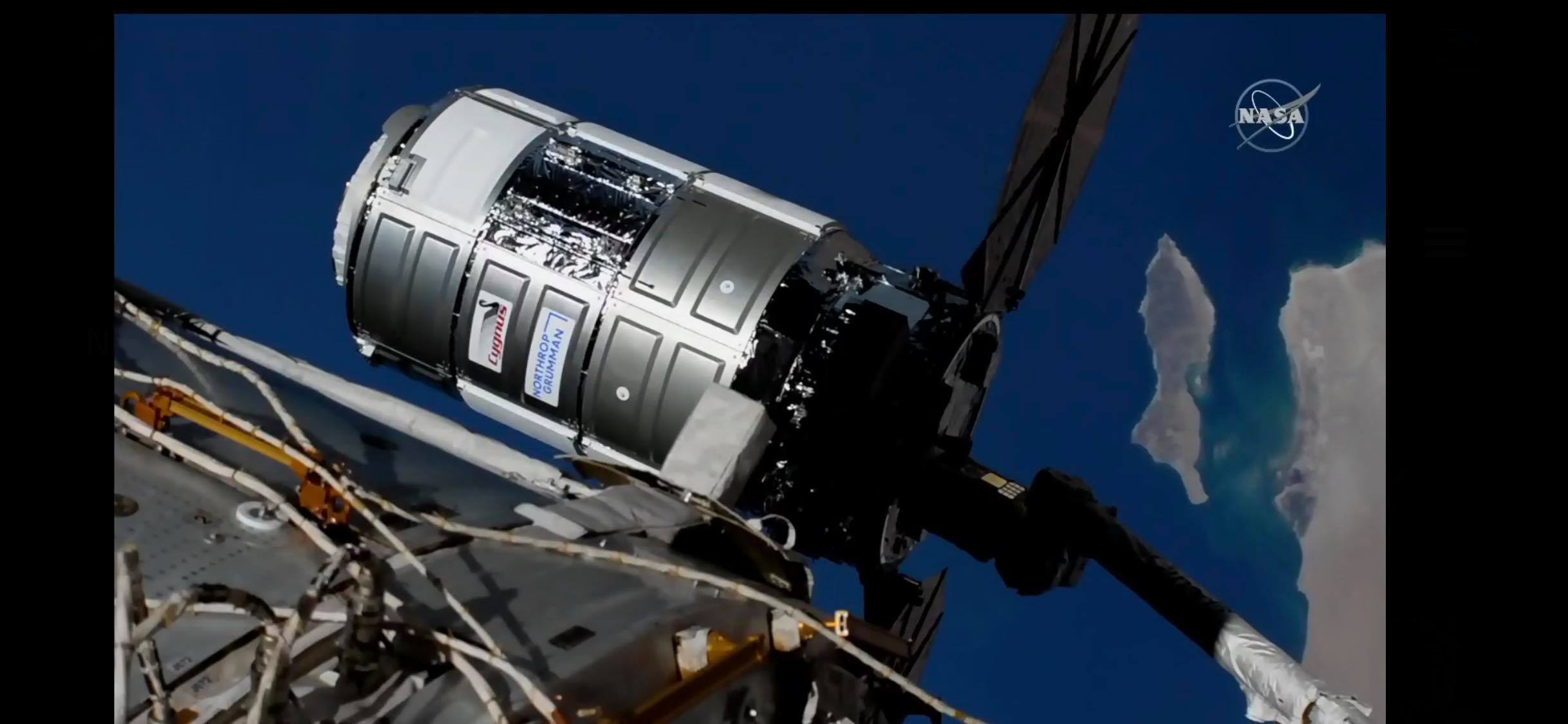 本日18時40分。東日本大震災復興10年を語る大横断幕を乗せたシグナス補給船を野口聡一宇宙飛行士がロボットアームでゲット(キャプチャー)しました! #東北復興宇宙ミッション
