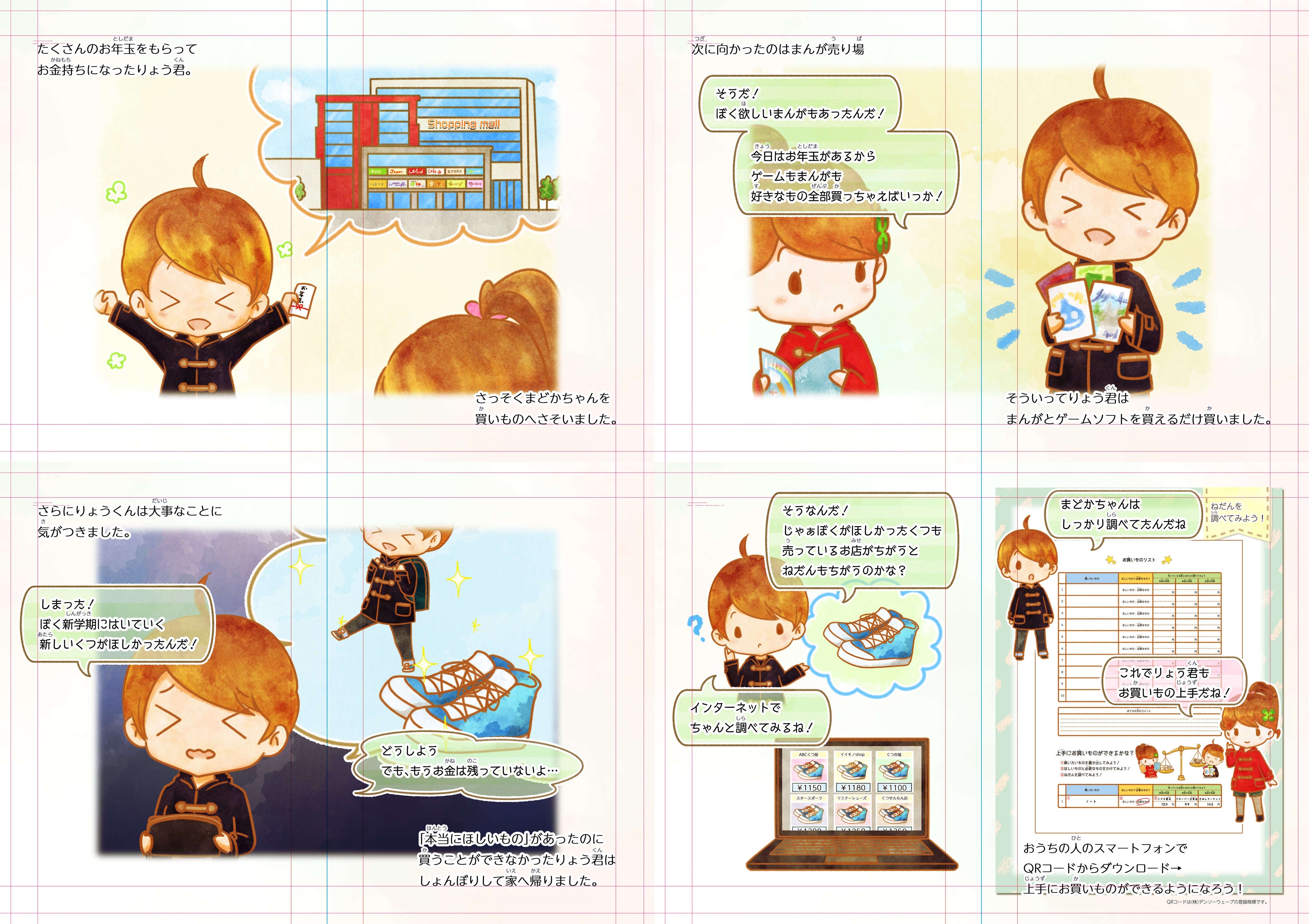家庭内での読み聞かせや子供達がお金に関して自発的に関心を持ってもらえるような企画です。