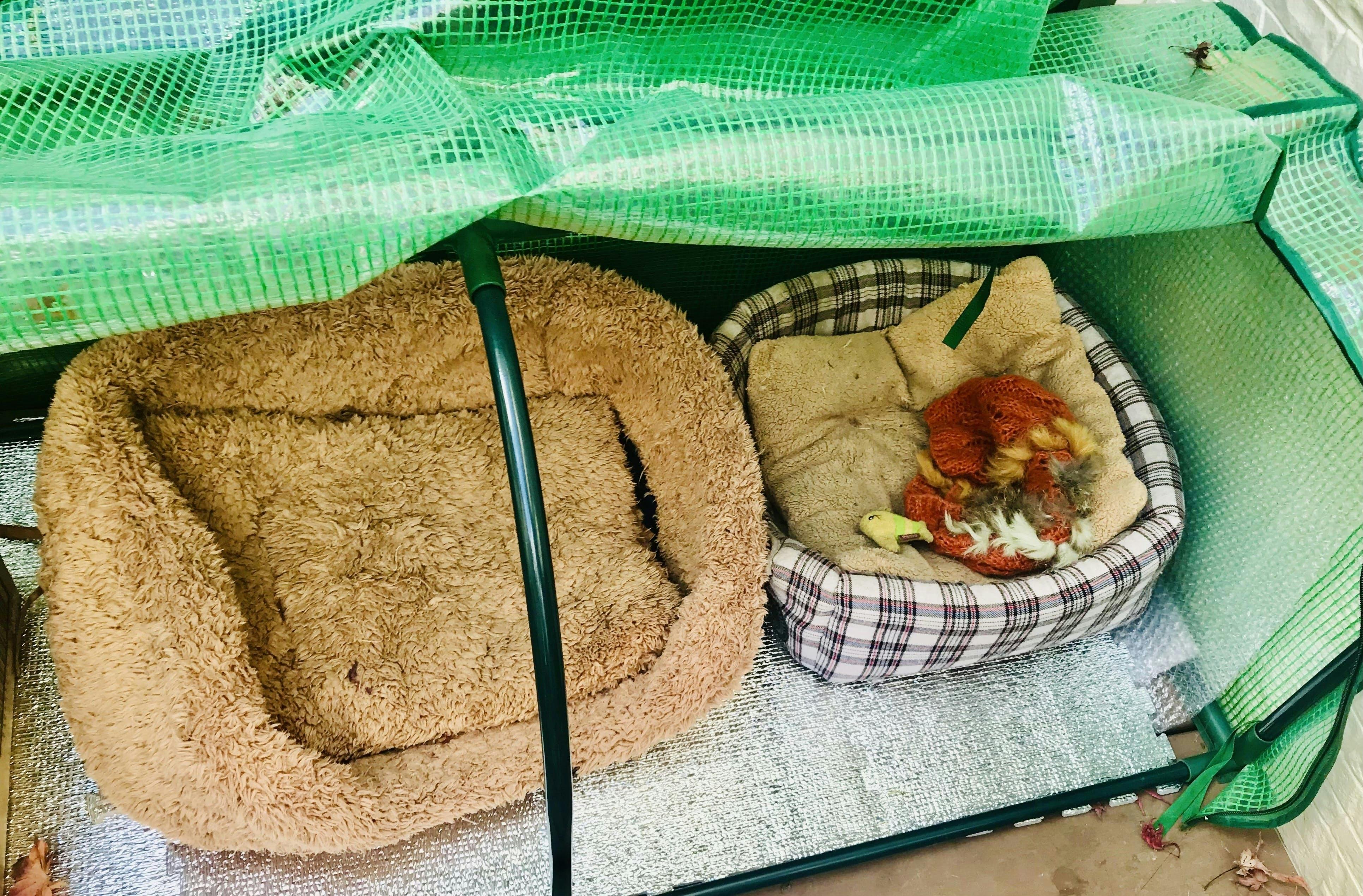 12月には冷たい雨、雪、寒さを親子がしのげるようにビニールハウスを活用し、保護しました。