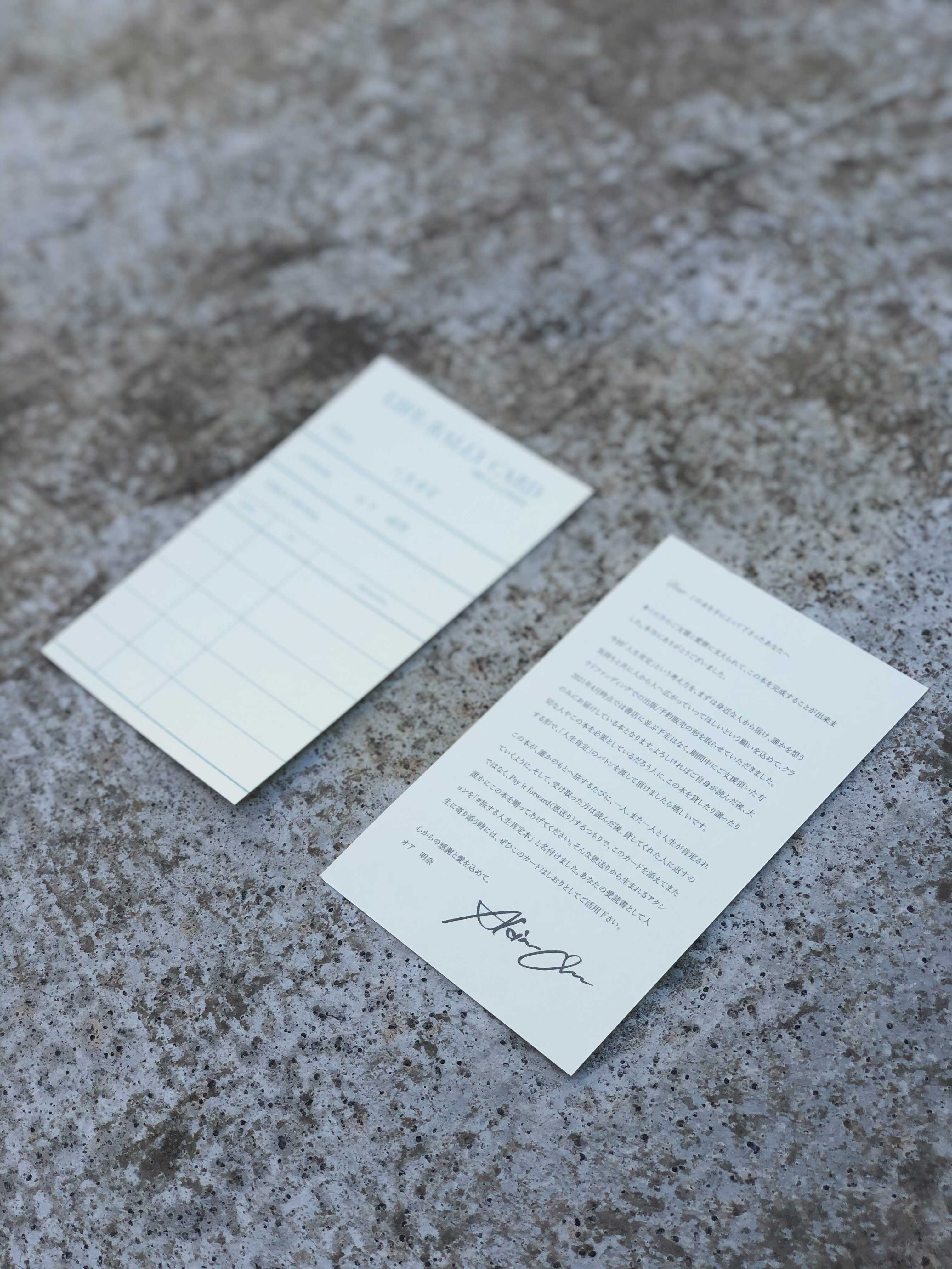 そうやって温かい輪が広がっていくことを願って、この企画を「旅する人生肯定本」と名づけました。カードのデザインは懐かしい図書カード(LIBRARY CARD)にかけて、LIFE-RALLY CARDとしています。ぜひお名前と、その人へのメッセージやこの本をお勧めしたい理由をカードに書いてお渡しください。