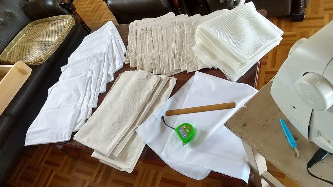 用途によって布地を厳選し、使用する道具に合わせて採寸して、ミシンでひたすら縫いました。