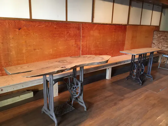 MACCHIのテーブルはミシン台をアレンジしたテーブル。