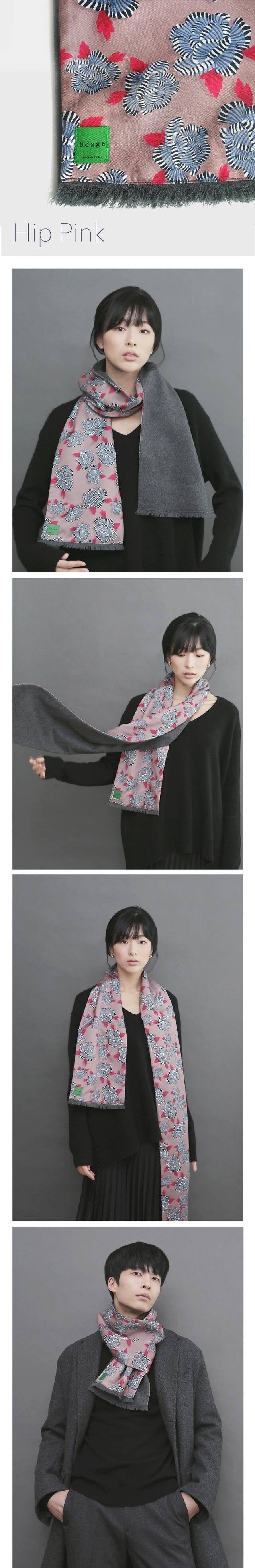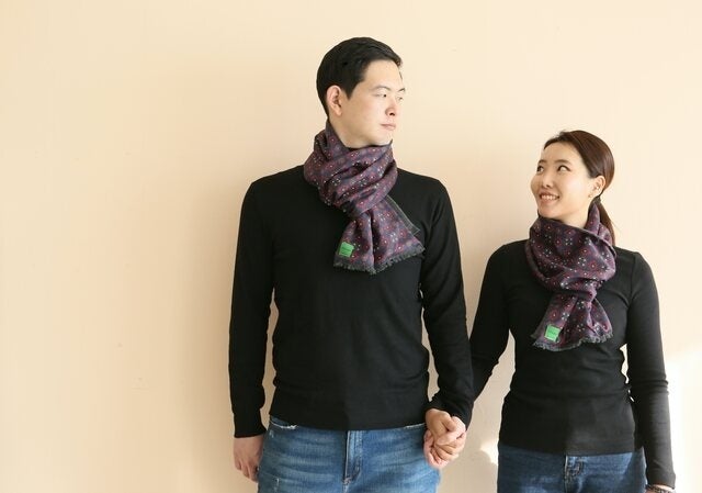 「edagaマフラー」はパターンの面と単色面の両方を使用できます。