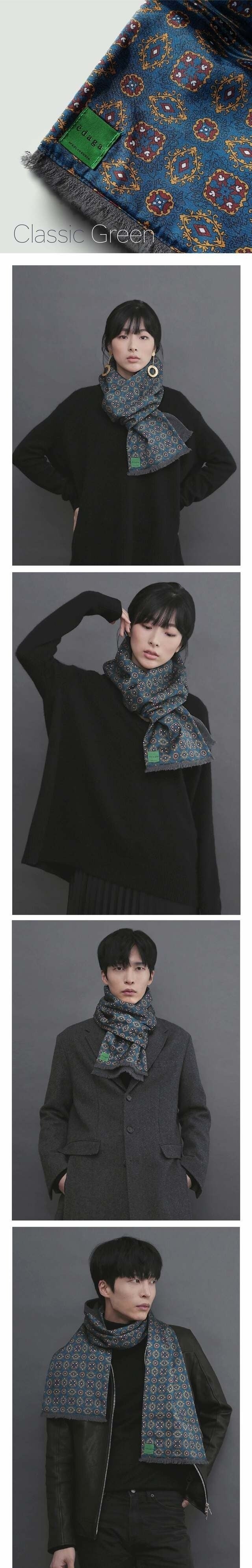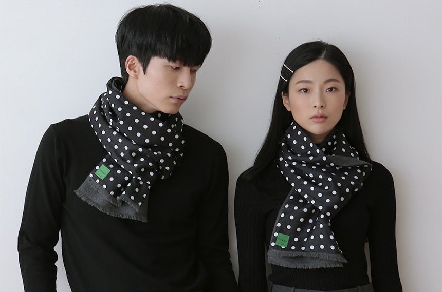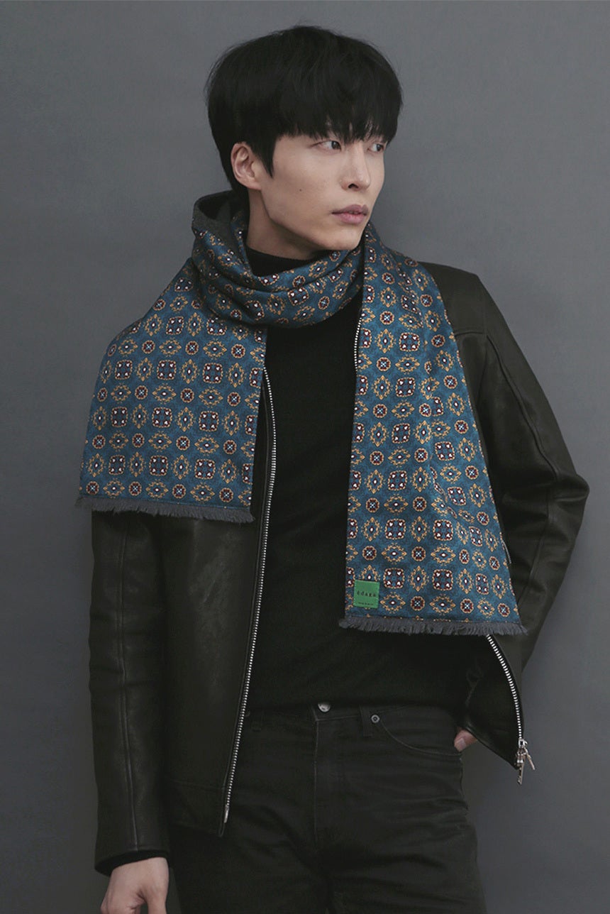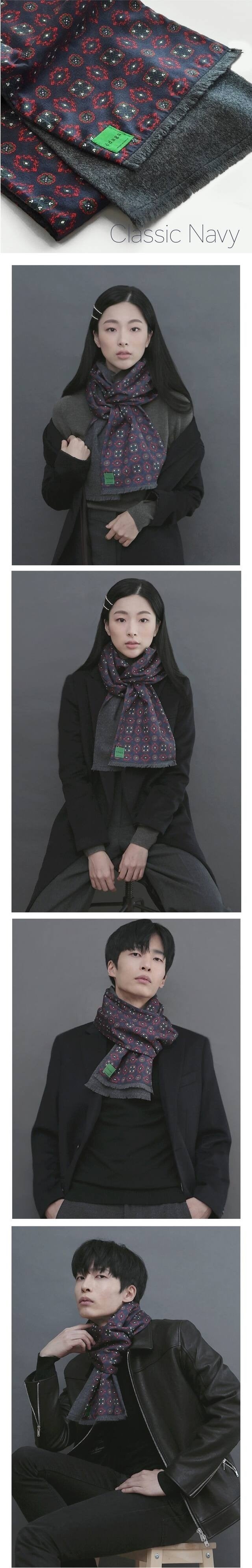 コートの生地を利用する際、マフラーの生地よりは粗さがありますが、薄くてドレープ性と保温性が確保でき、プリントされた面がネクタイのようなデザインを与えることができます!