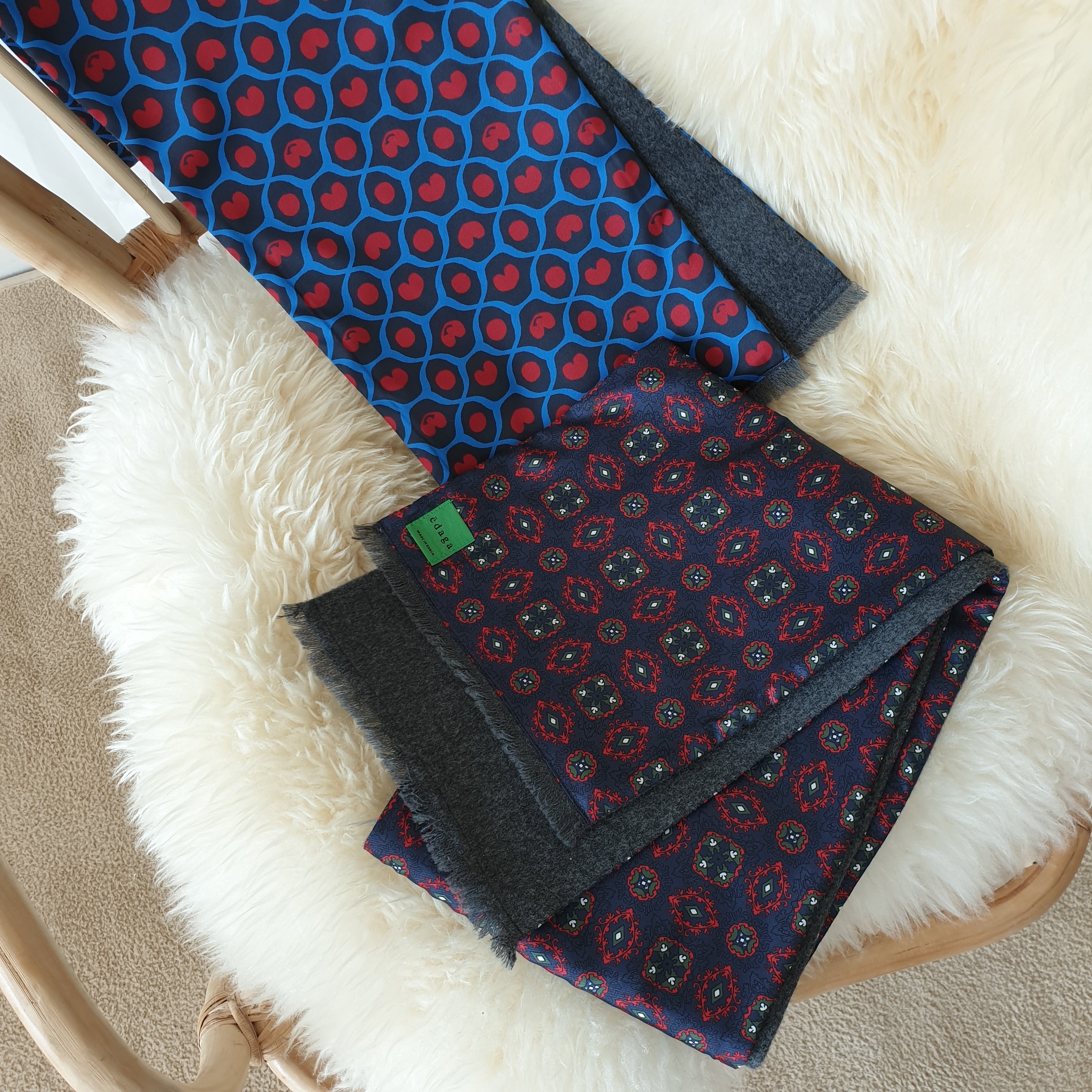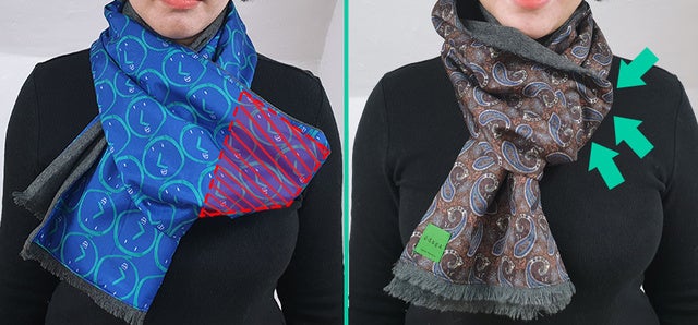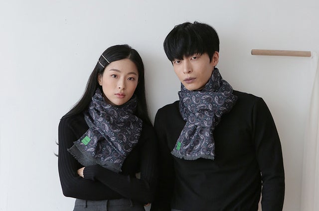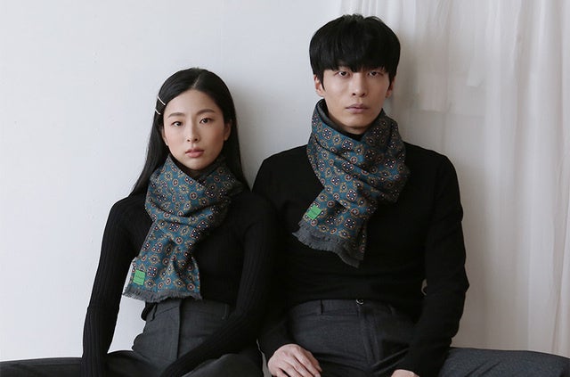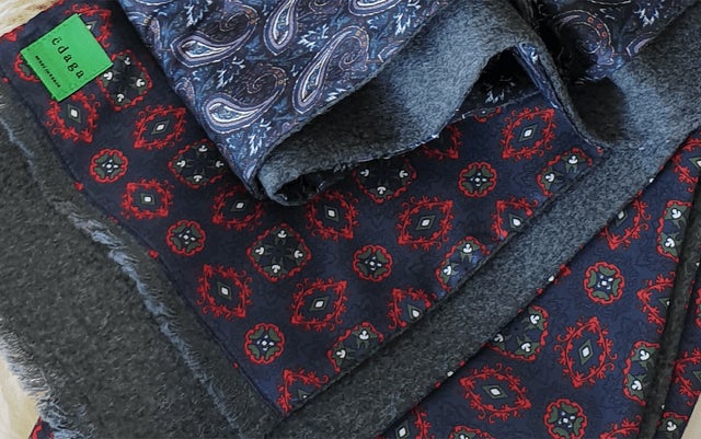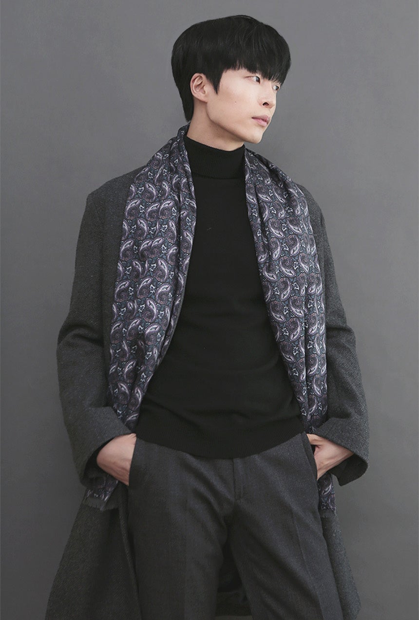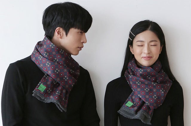 コートの生地を利用する際、マフラーの生地よりは粗さがありますが、薄くてドレープ性と保温性が確保でき、プリントされた面がネクタイのようなデザインを与えることができます!