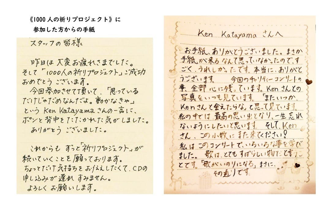 2011年、東日本大震災復興支援として行った《1000人の祈りプロジェクト》は、全国の "被災地には行けないけれど支援したい"という想いをCDという形にしました。