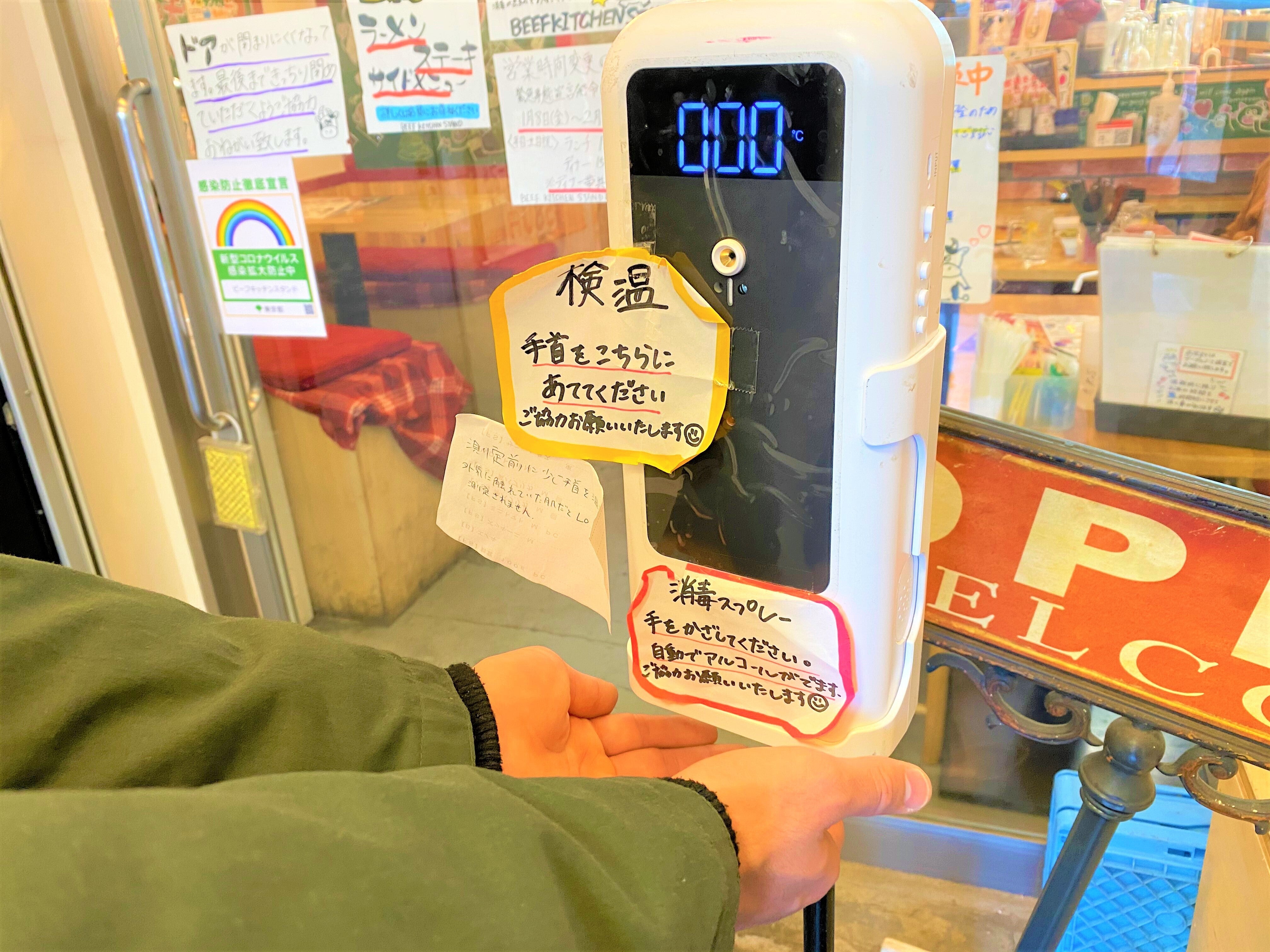 入店時に必ず検温と消毒のご協力をお願いしております。また、体調のすぐれない方の入店はお断りしております。