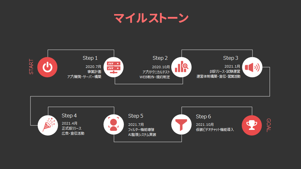 開発は2020年夏から始まって、 現在自己資金でアプリの基幹システムの開発が完了しており、β版としてリリースしました。