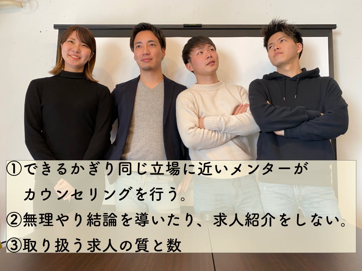 ①できるかぎり同じ立場に近いメンターがカウンセリングを行う。