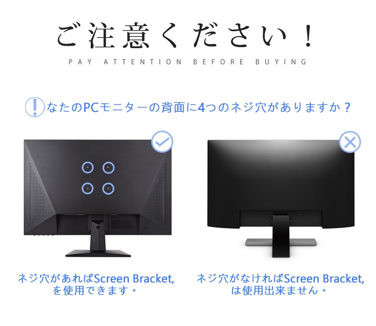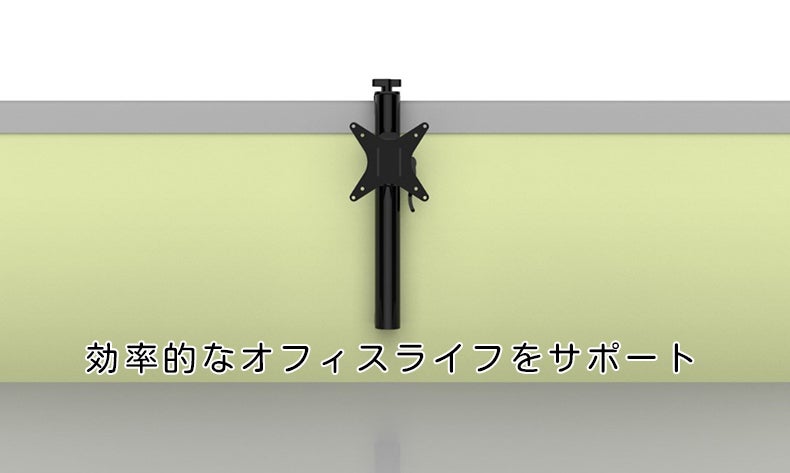 ScreenBracketの取り付けはとても簡単でパーテーションの厚さが2~8㎝で高さが40㎝以上であれば設置できます。(モニターの後ろに4つのネジ穴がある事を確認してください!)