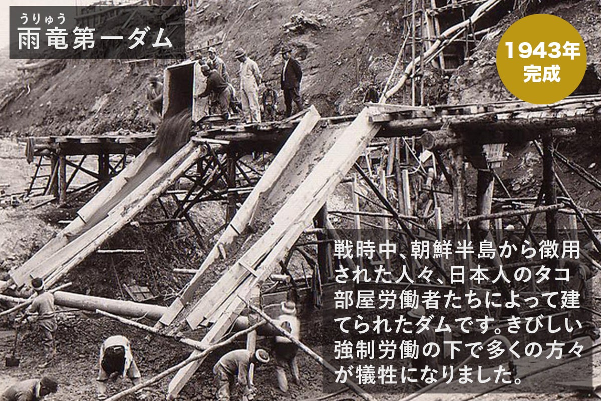 その後、1937年から始まった雨竜ダム工事には、朝鮮半島から強制連行された労働者が従事させられました。1942年の統計上の移入朝鮮人数は3000人にのぼるとされます。
