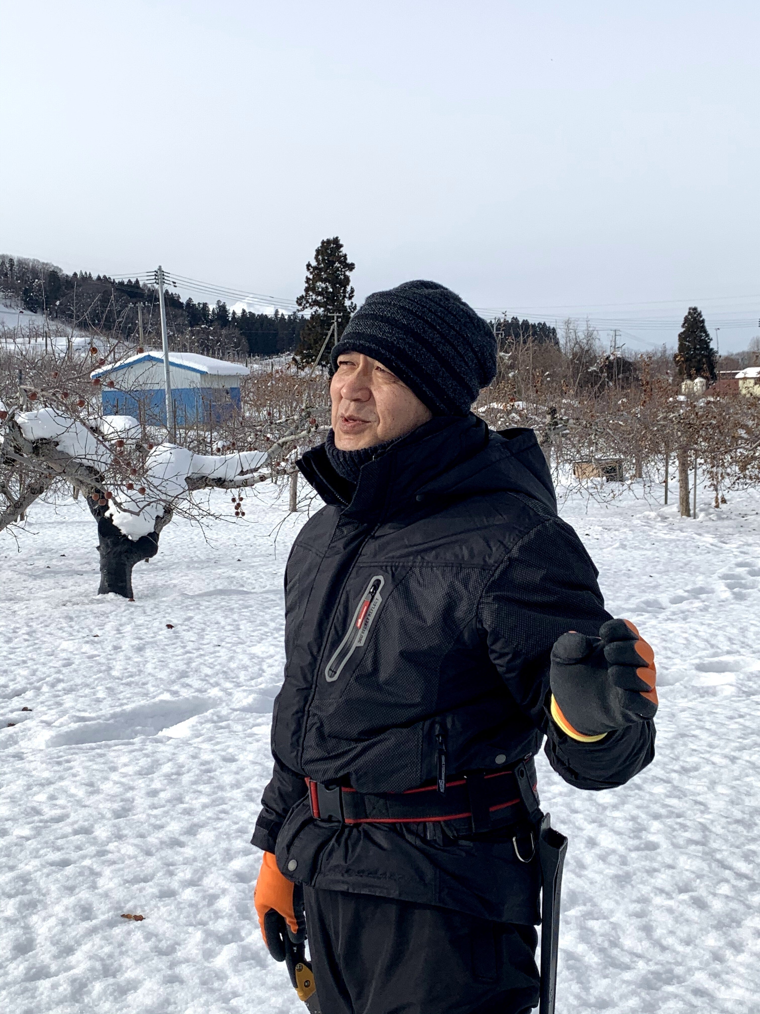 りんごづくりは難しいもので、正解がありません。「りんご栽培において、この作業のときはこうすればいい」と公表されているノウハウはありますが、園地それぞれに環境が異なりますので、そのノウハウ通りにやってもうまくいかないことが多々あります。そのため、りんご栽培とは常に自分の園地にとっての正解は何か?を探し求める旅をしているようなものです。考えながら、りんごの木と対話しながら、自然の様子を見ながら、りんごの木をまるで我が子のように1年中お世話しています。