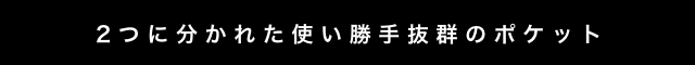 スマートフォンサイズのポケットと、必需品を入れるポケットを2つに分けています。