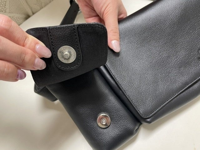 収納スペースは3箇所あり、ポケットはマグネット式のため、片手でも開閉しやすくなっています。