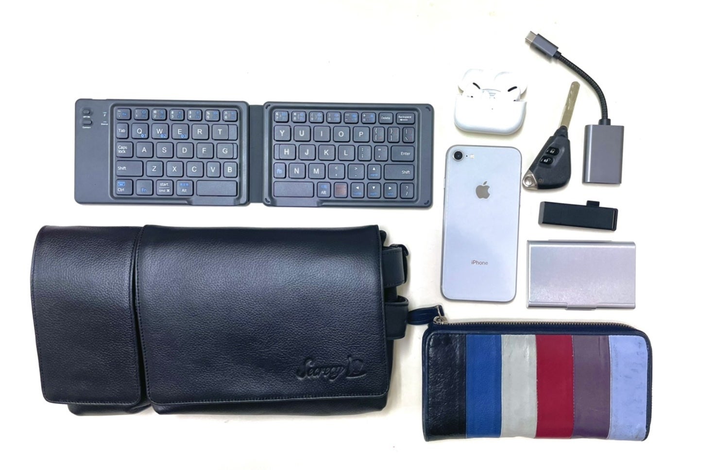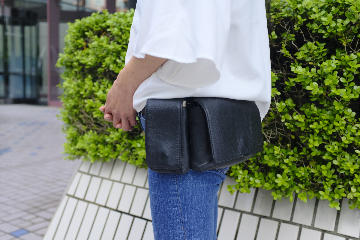 モバイルバッテリーや長財布など、日用品を持ち運べる、丁度いいサイズ感です。