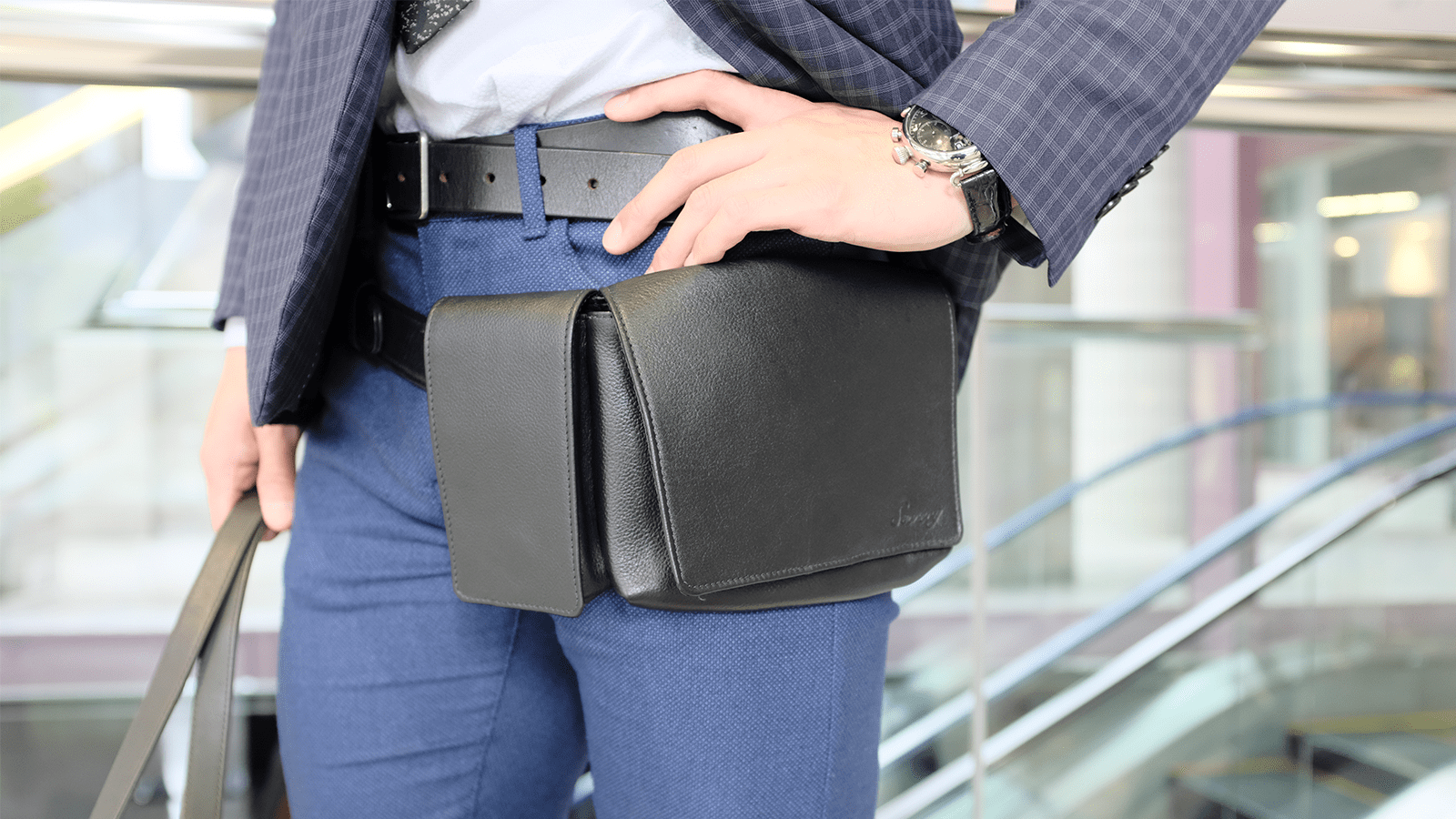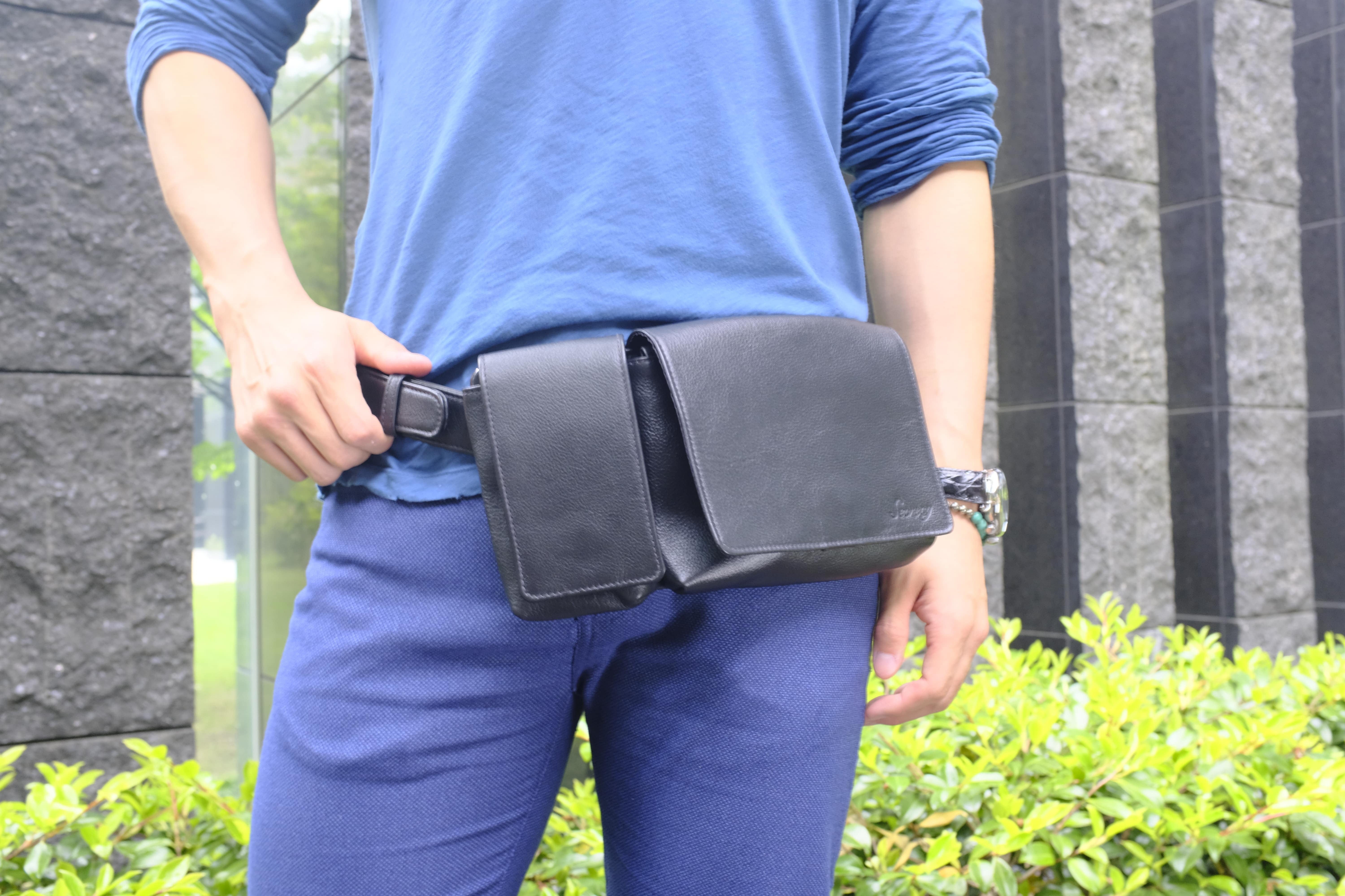 年齢・性別問わず、「スマホを常に身につけたい」「スマホや必需品をスムーズに取り出せる」「シンプルで服装問わずに使える」をコンセプトに開発された、本革製のボディ&ヒップバッグです。