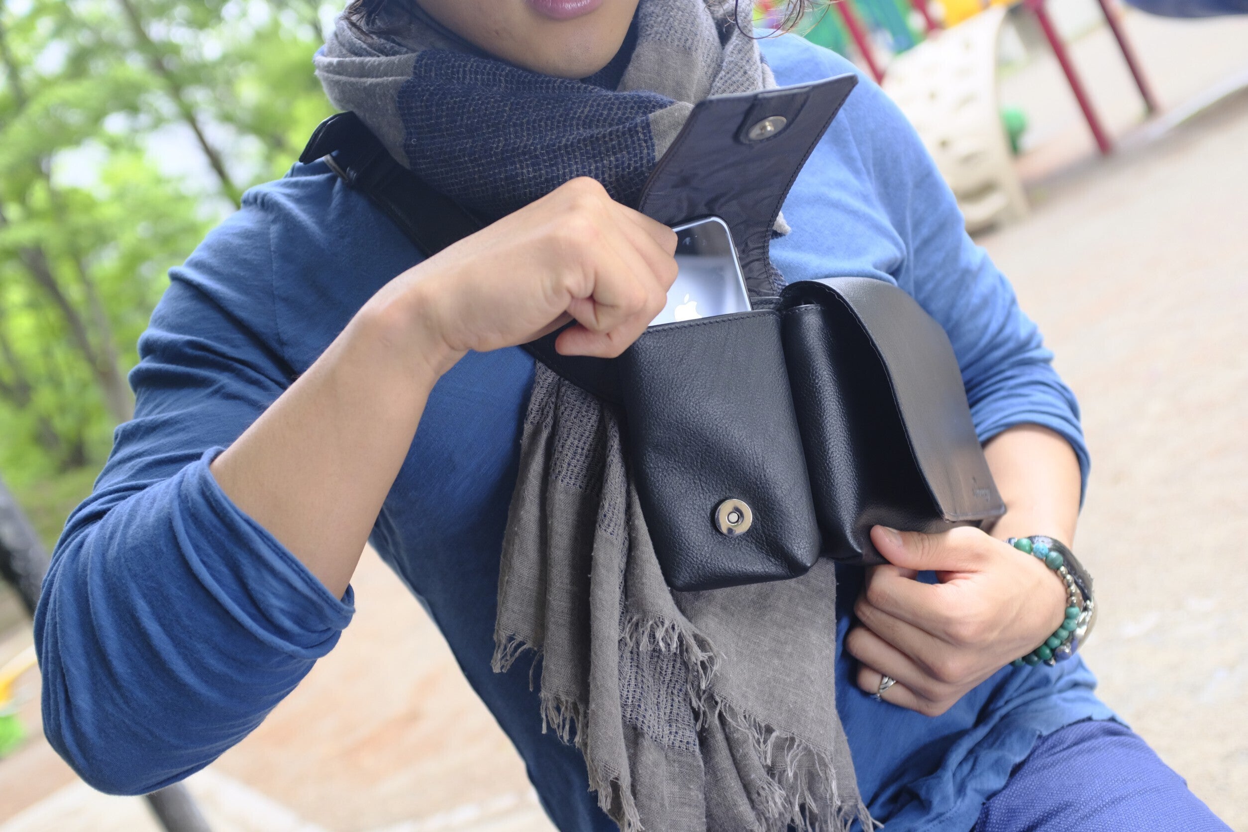 スマホが簡単に取り出せ、便利で安心です。