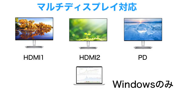 そしてHDMIポートが2つあるためノートPCのモニターもあわせればトリプルモニターとしてご使用が可能です。