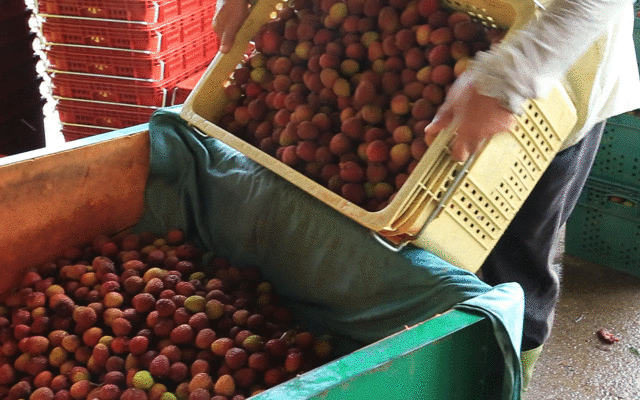 日本へ輸出するライチは枝や葉を取って粒だけにしたものを、検疫のために蒸気処理します。