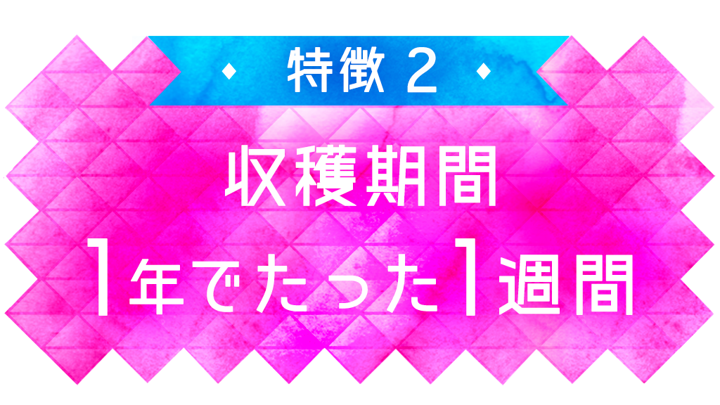 収穫の時期は、だいたい6月の上旬から約1週間のみという極端な短さ。