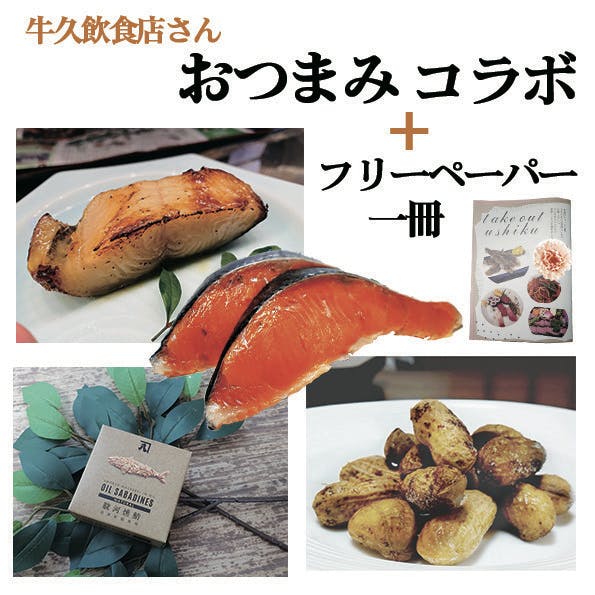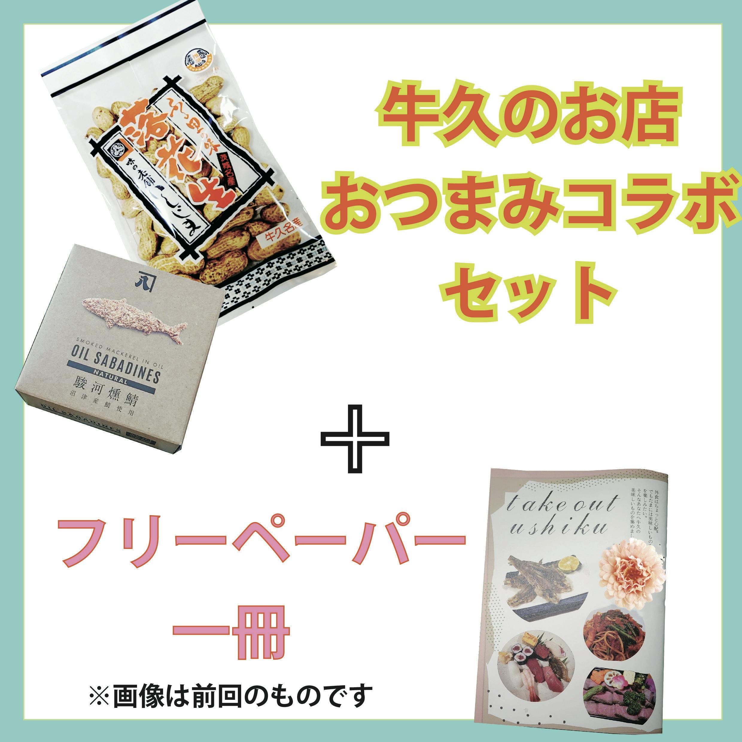 (牛久市のお店2店舗によるおつまみセット+出来上がったフリーペーパー一冊)