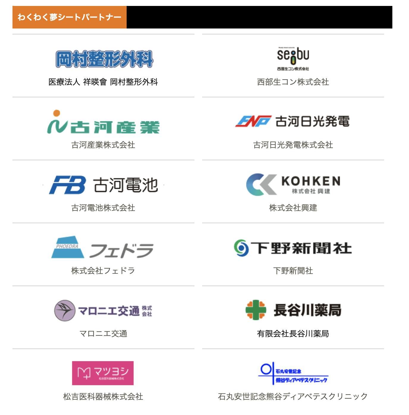 私たちと一緒に応援して下さる企業へのご支援もお願い致します。