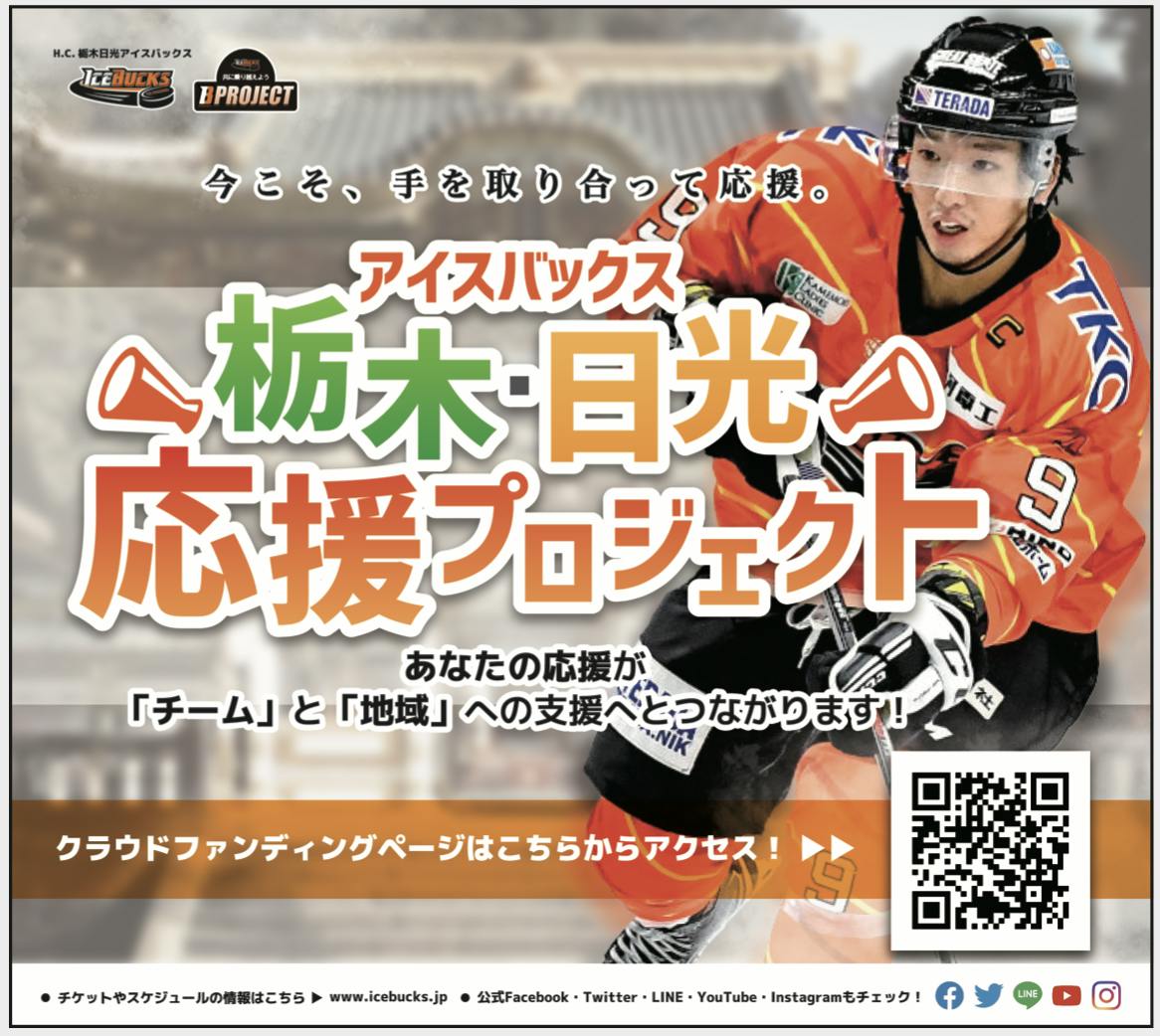 アイスバックスの役割は何か、日頃から支えて下さる地域の皆様や企業のためにできることはないのか?そんな想いから、今回はクラウドファンディングを通じて、アイスバックスの支援のお願いと、日頃から支えてくださる栃木・日光のパートナー企業様を含めた『アイスバックス栃木・日光応援プロジェクト』を実施することに致しました。