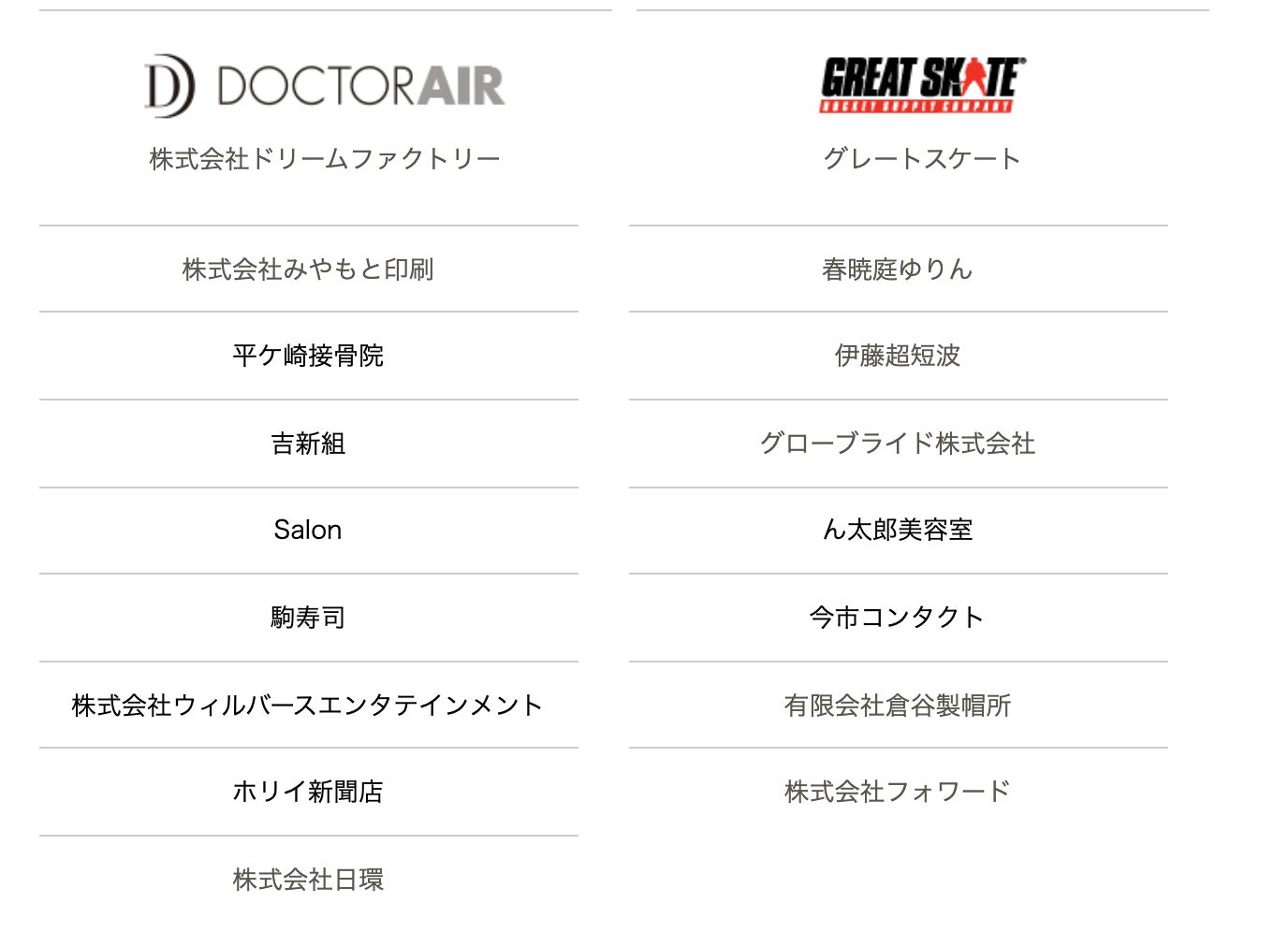 私たちと一緒に応援して下さる企業へのご支援もお願い致します。