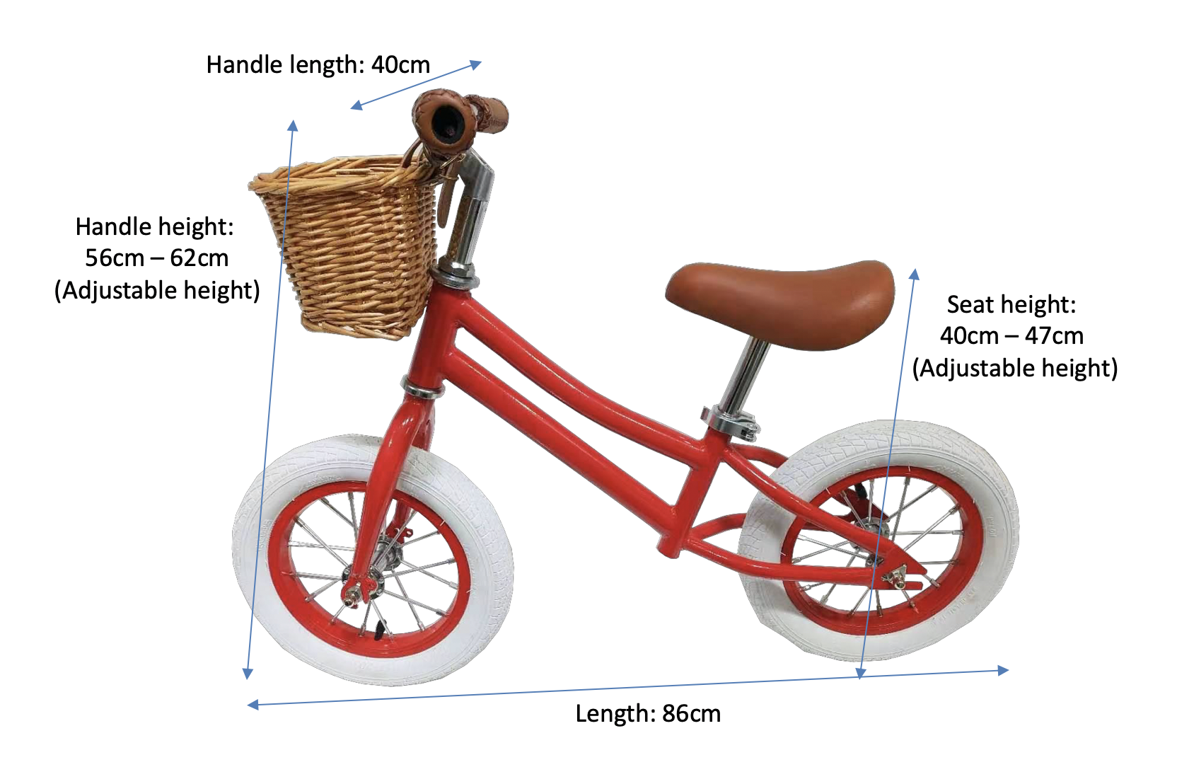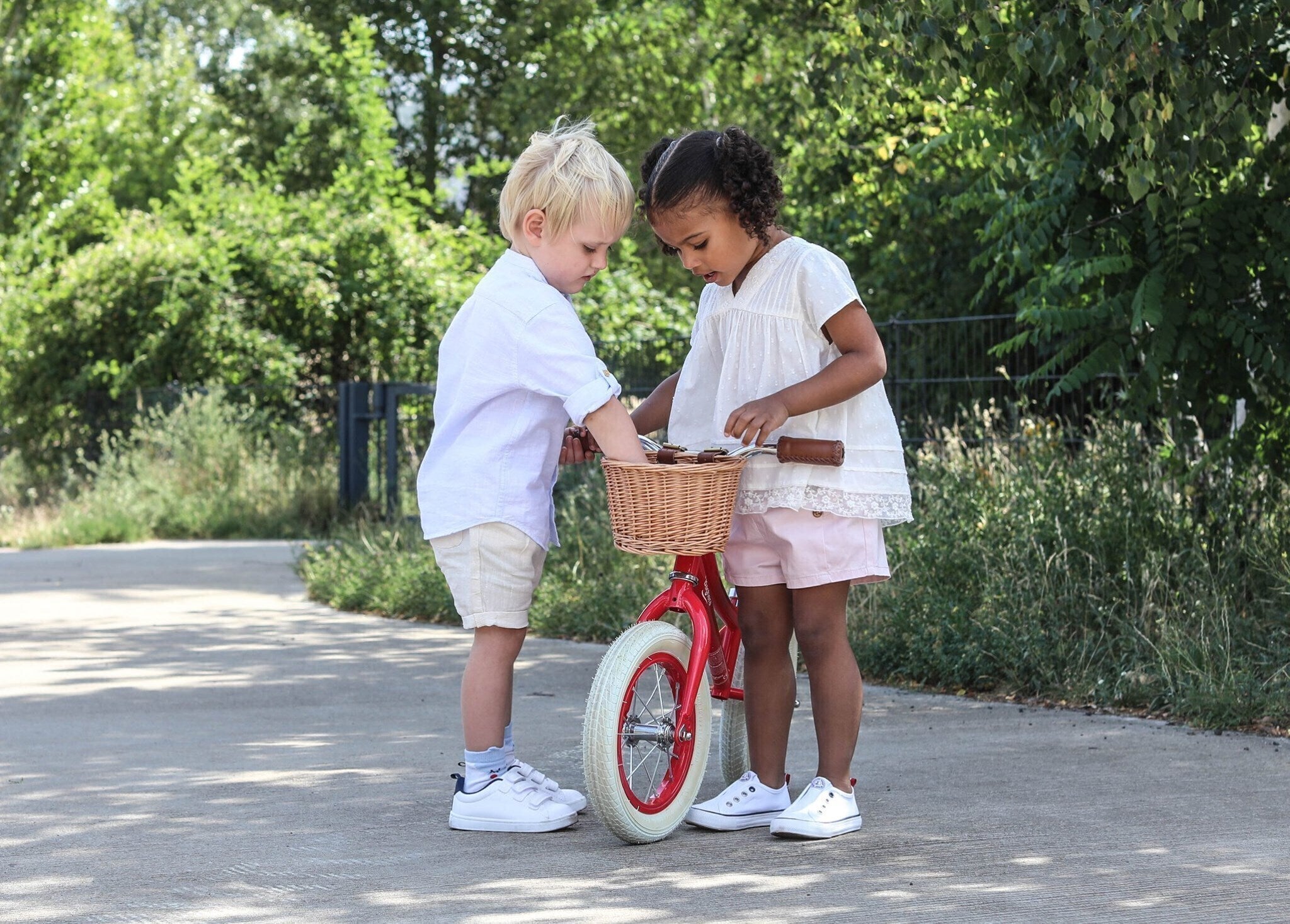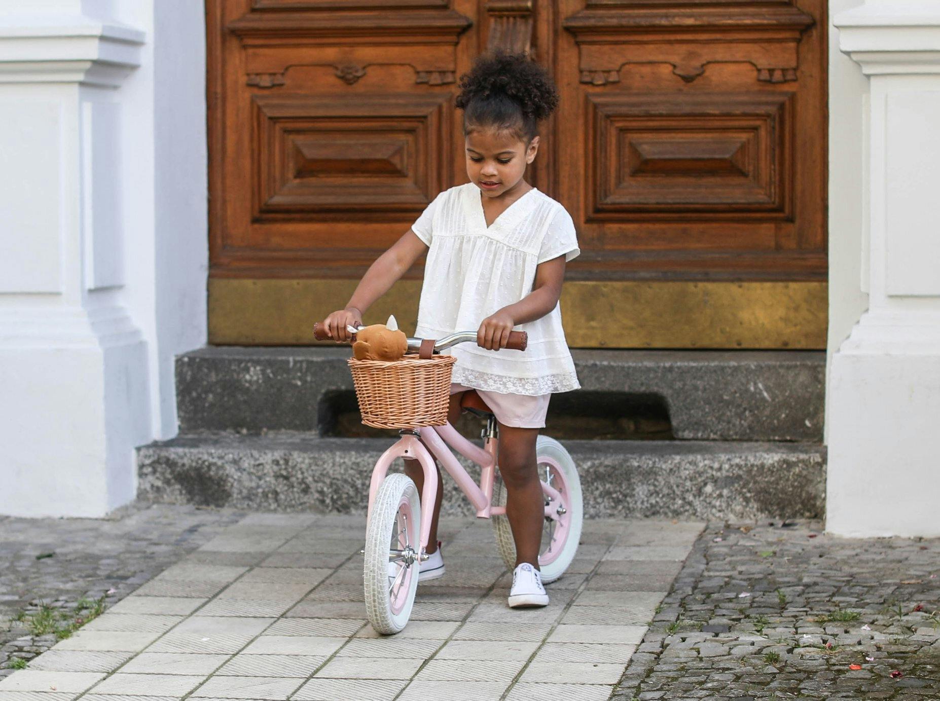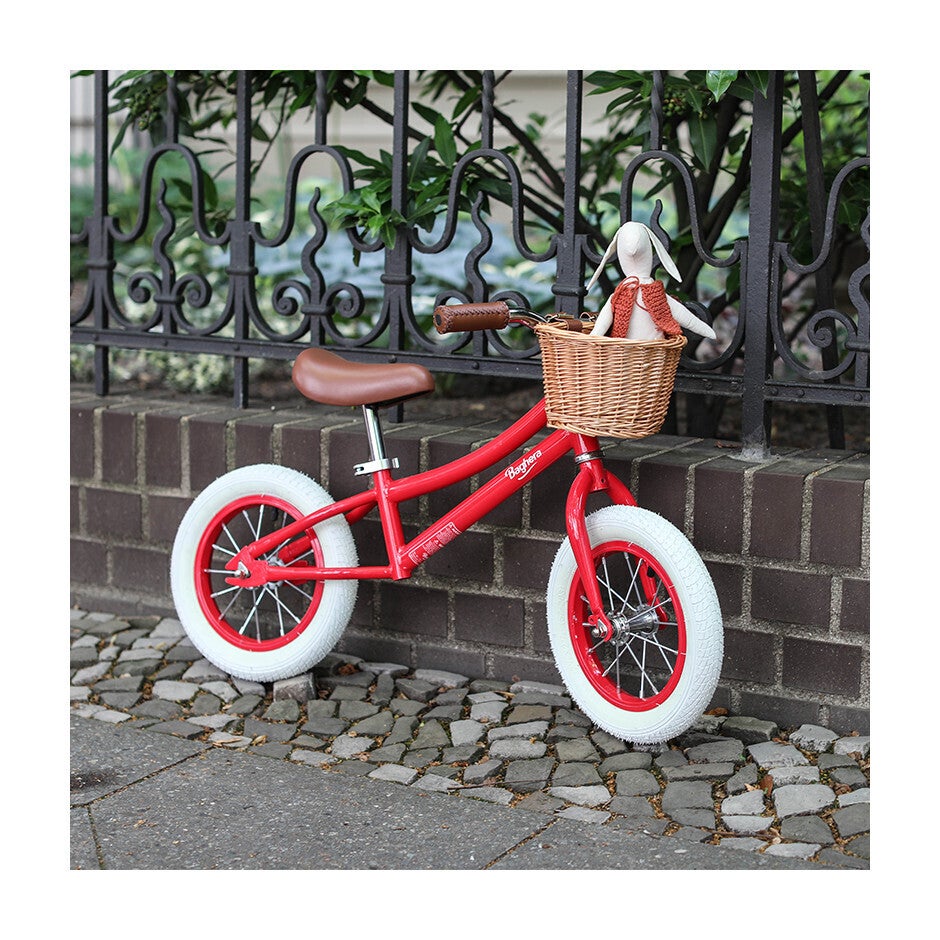 シンプルでクラシカルなデザインを際立たせるバスケット。こんなに可愛いバスケットが付いたバランスバイクに乗ってみたかった!バスケットには何を入れて遊びに出かけよう?