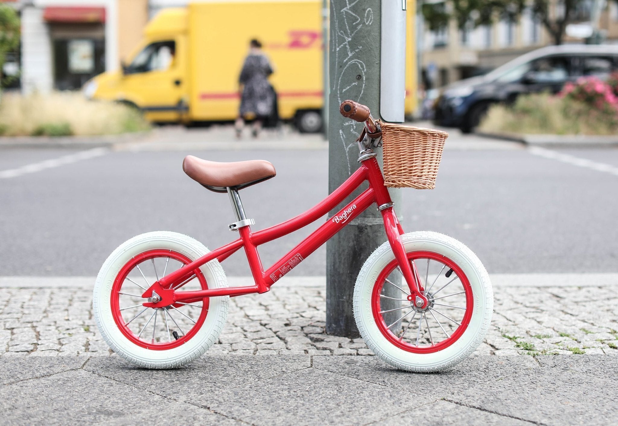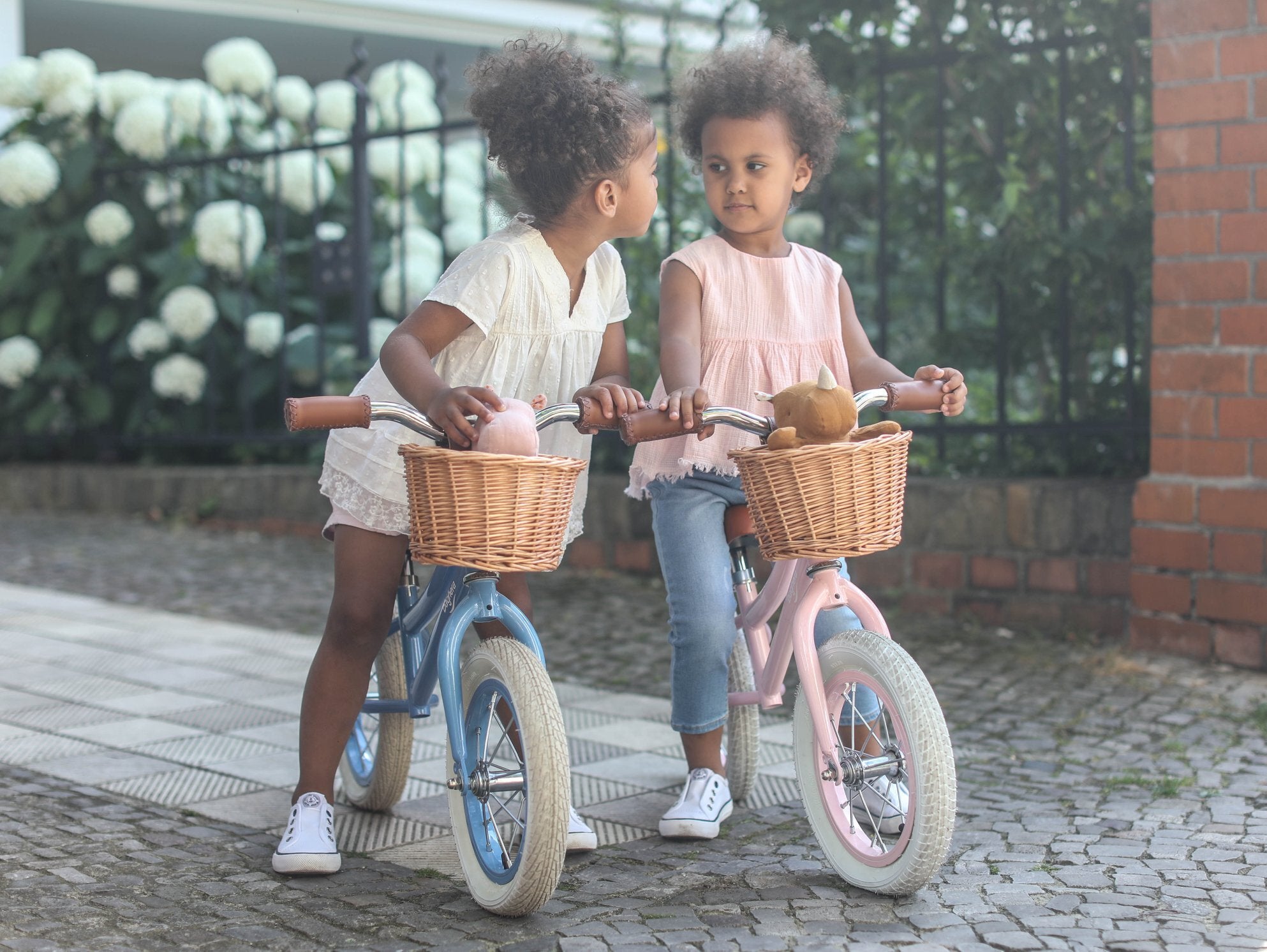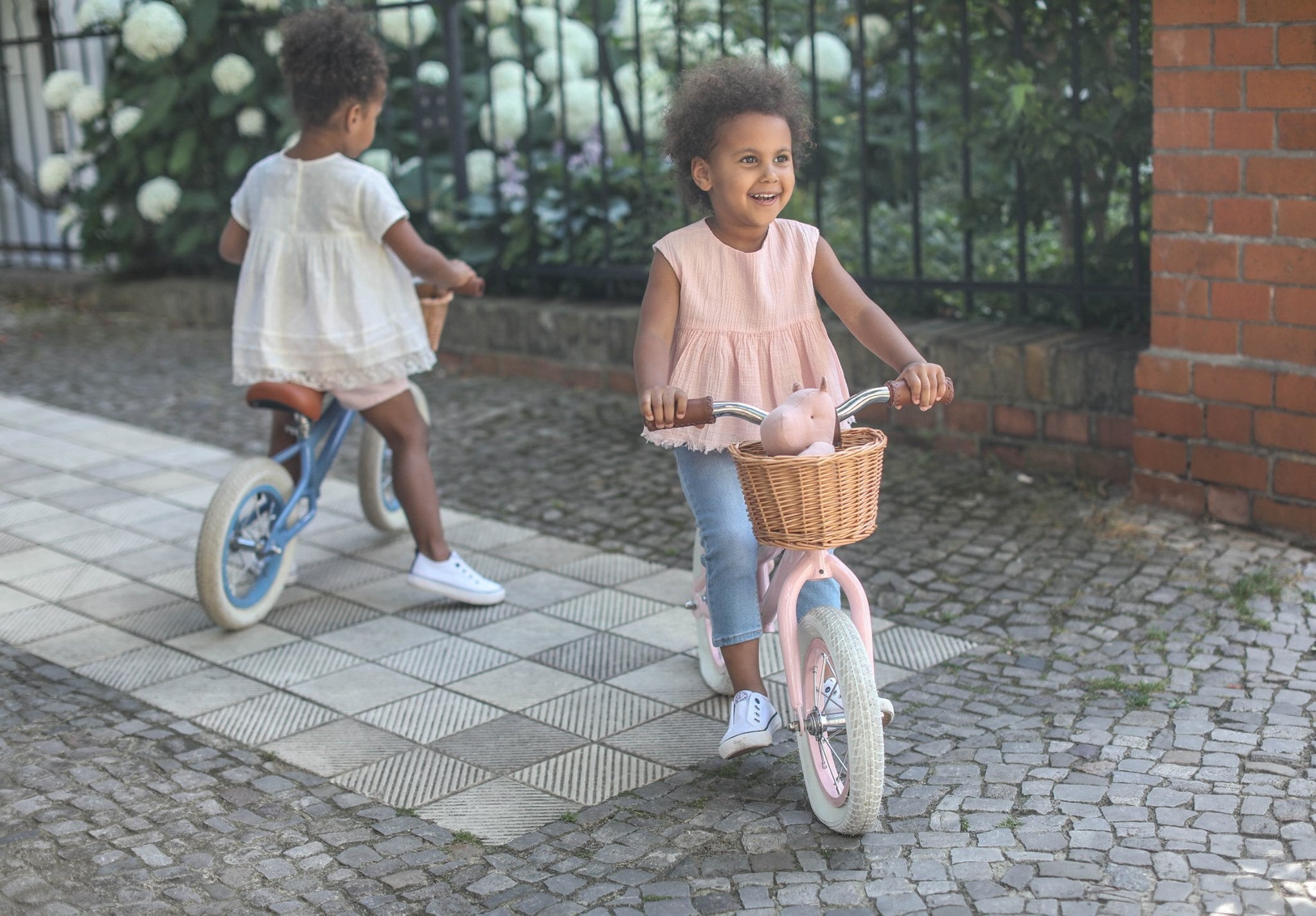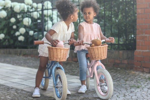 シンプルでクラシカルなデザインを際立たせるバスケット。こんなに可愛いバスケットが付いたバランスバイクに乗ってみたかった!バスケットには何を入れて遊びに出かけよう?