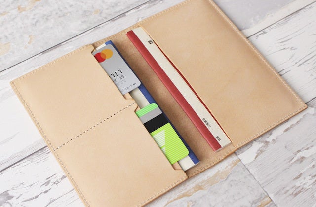 よい革の素材で通帳カバーを作りました、作りたい!といっても