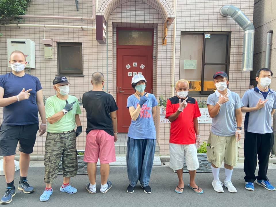 社会との接点として、我々が重視しているのは地域との関わりです。結YUIでは平時から山谷に住まう人たちとで地域清掃を実施してきました (さんやカフェ清掃隊)。定期的に有志で地域を回り、ゴミ拾いをするという地道な活動を通じて、生活保護の方や野宿生活の方々と言葉を交わし、互いを知っていきます。路上で飲んでいる人の中には一緒にゴミ拾いをし始める方もいます。また、清掃中に様々なまちの人から「おつかれさま」「ありがとう」と声をかけられることでまちの一員としての帰属感と自己肯定感の向上に繋がります。