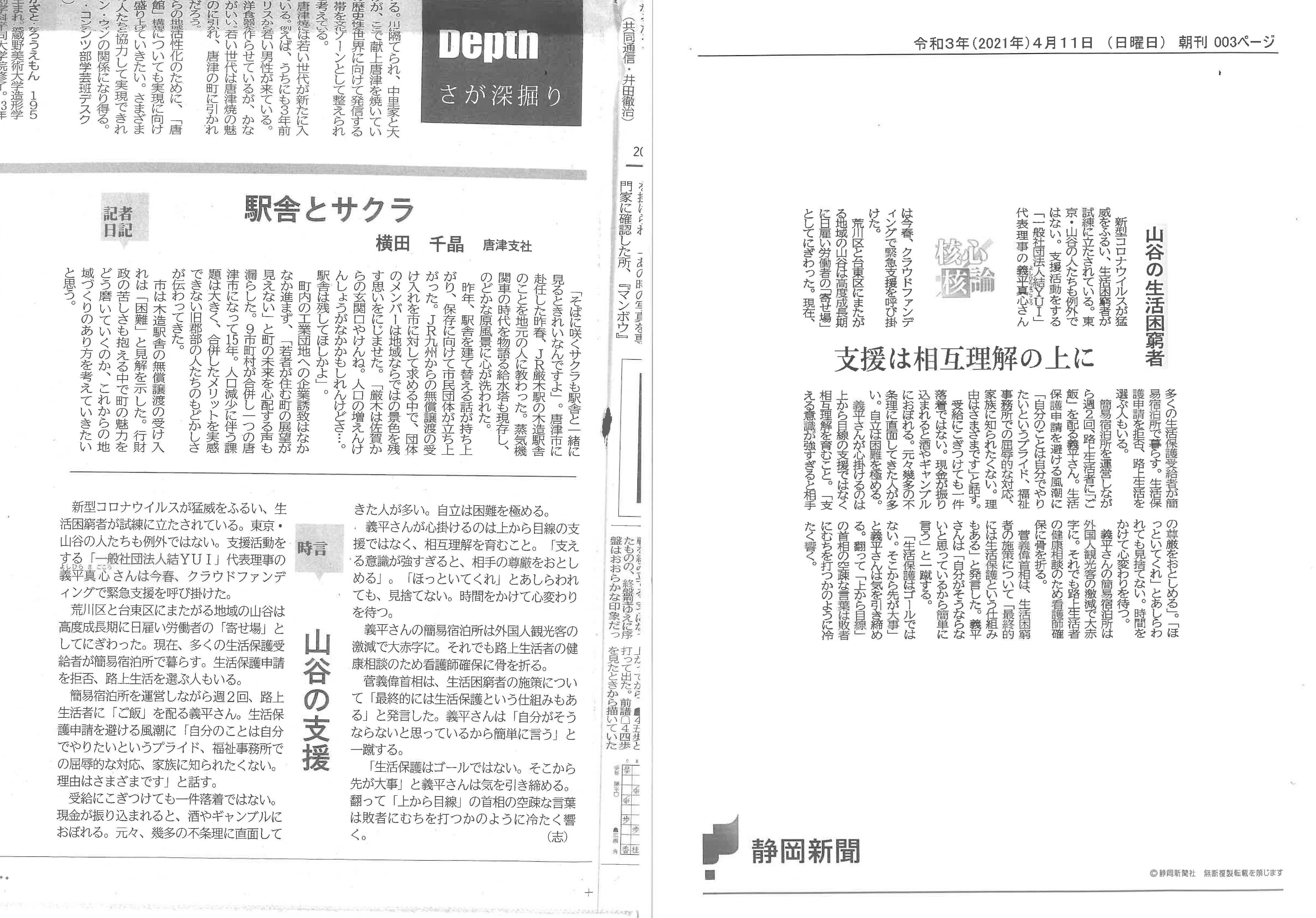 共同通信の記者さんの電話インタビューを受け、記事が佐賀新聞と静岡新聞に掲載されました。是非ご一読くだされば幸いです。