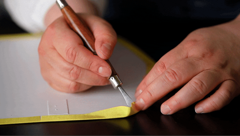 型紙から各パーツは熟練職人がひとつひとつ丁寧に作り、加工しました。