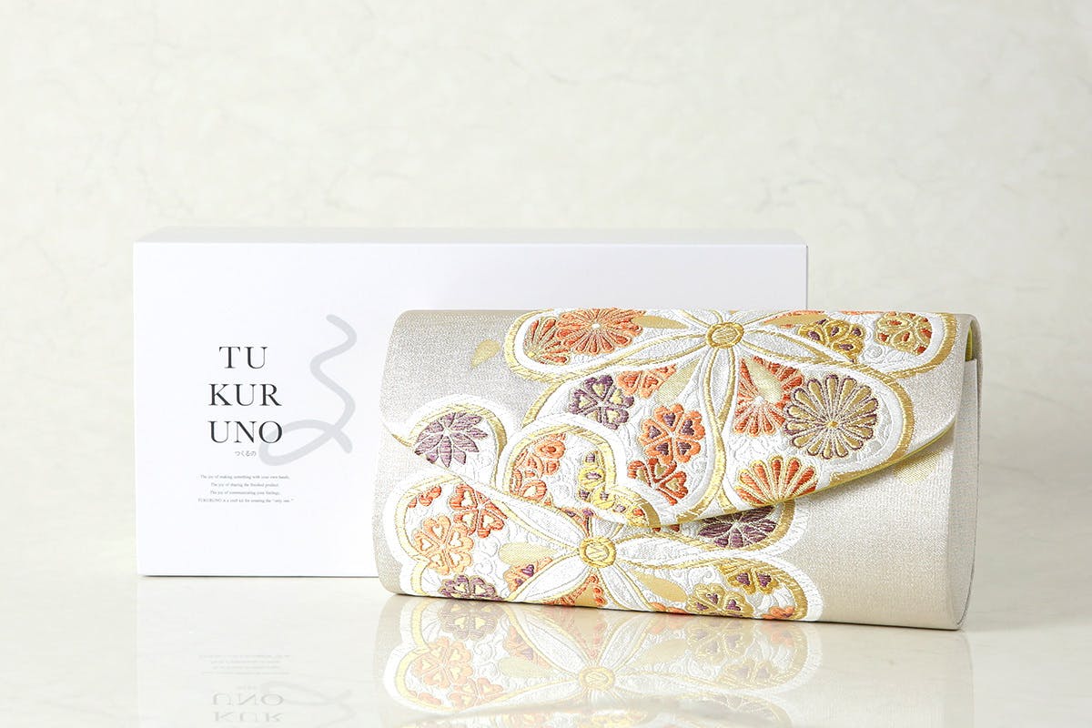 成人式に相応しい華やかな高級西陣織クラッチバッグを、熟練職人が丁寧にご用意した手作りバッグキットです。