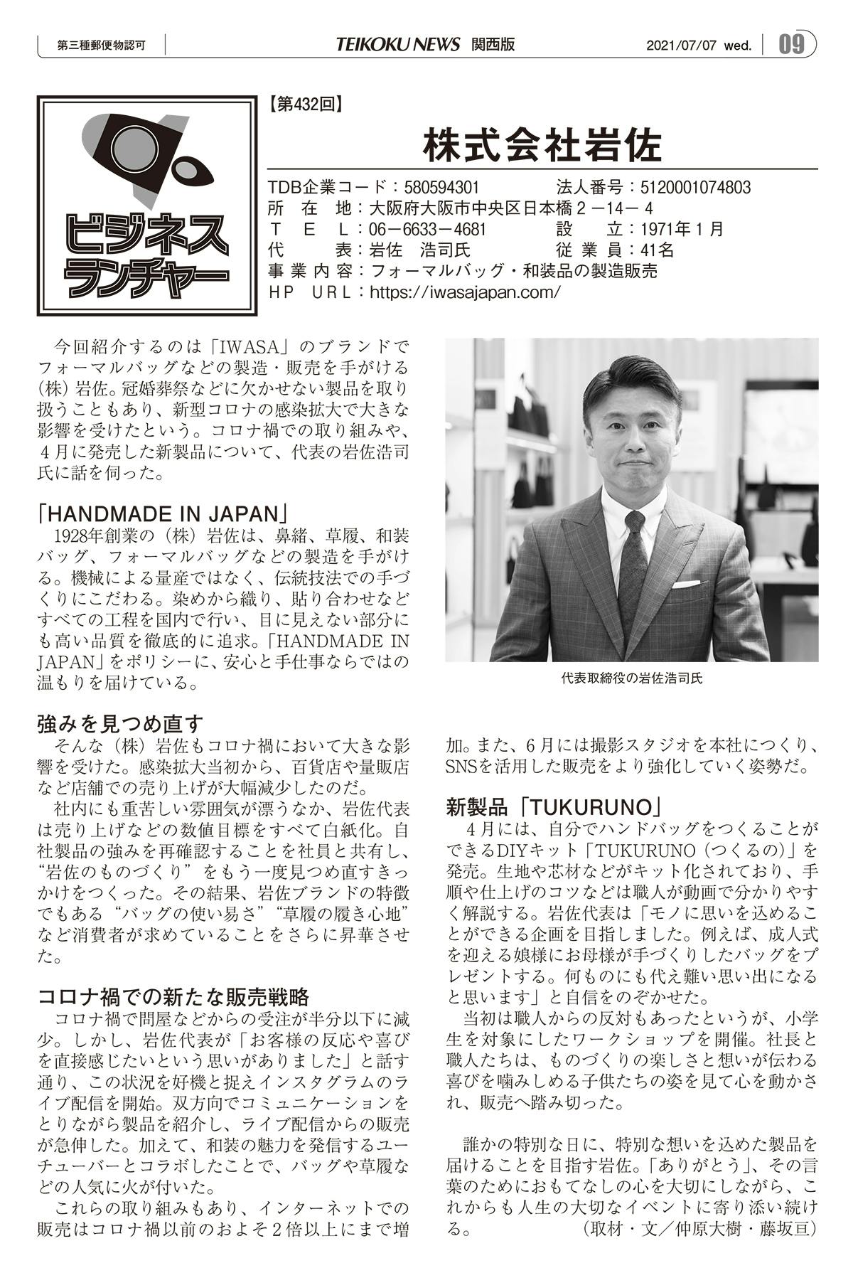 帝国データバンク:TUKURUNOが掲載されました