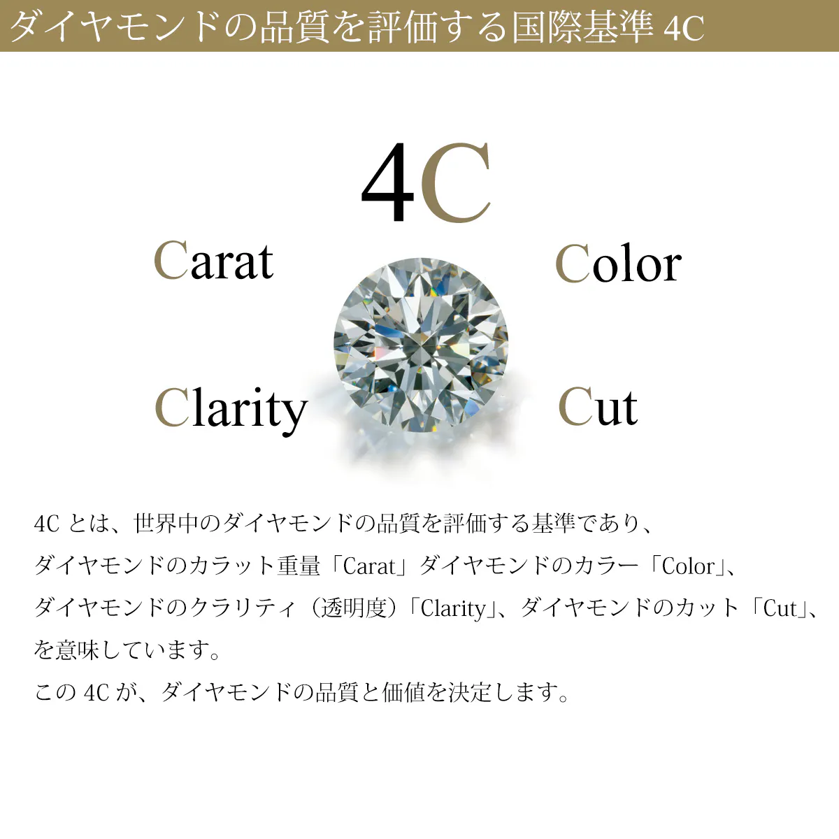 ダイヤモンドの品質を表す4Cなどの内容を記載した袋タイプのカードです。