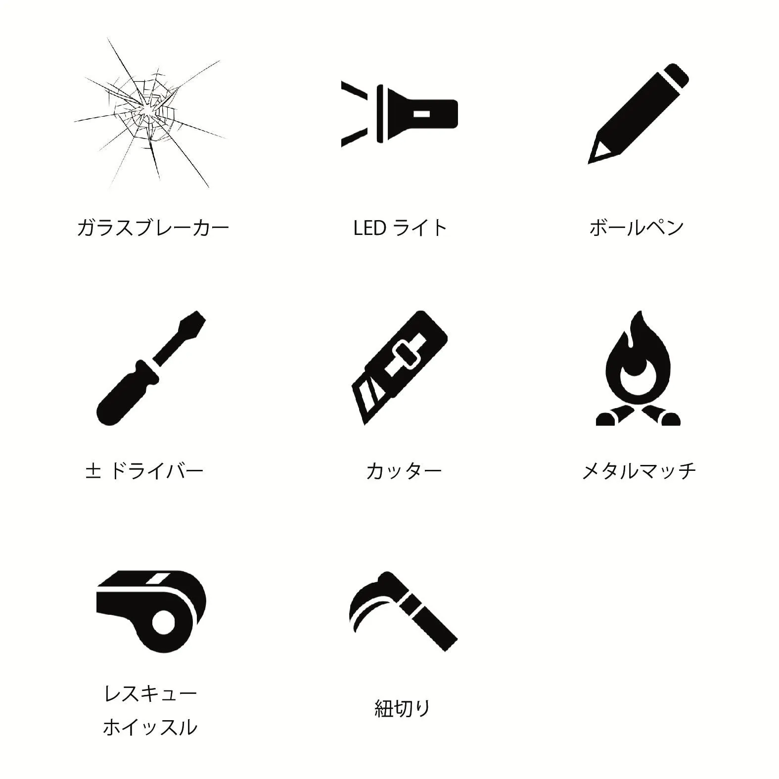 ・∞には生活に役立つ8つの機能が凝縮され、日常生活はもちろんのこと、アウトドア・キャンプ・護身用として、災害時、緊急時など、様々な場面で大事な役割を果たしてくれます。