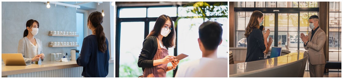 ・接客、営業時、マスクで顔が覆われてしまい、表情が見えず、お客様や取引先にいまいち安心感を与えられない。
