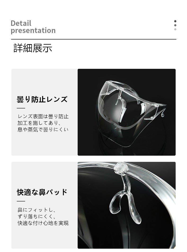 装着することで花粉症により痒くなった目鼻を触ることを防げるだけでなく、マスクと併用することで、くしゃみによっていつも以上に飛び散る飛沫をせき止める役割も担ってくれます。