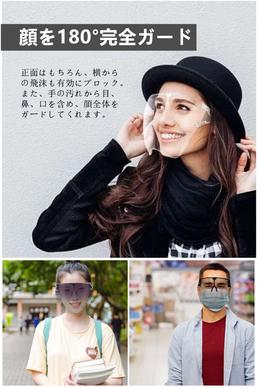 また、屋外での運動時に、カラーフェイスシールドを装着すれば、UVカットもできます。