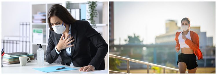 ・マスクを付けた状態でのランニングなどの運動をすると、酸欠で息が苦しい。スムーズな呼吸と気遣いの両立が難しい。