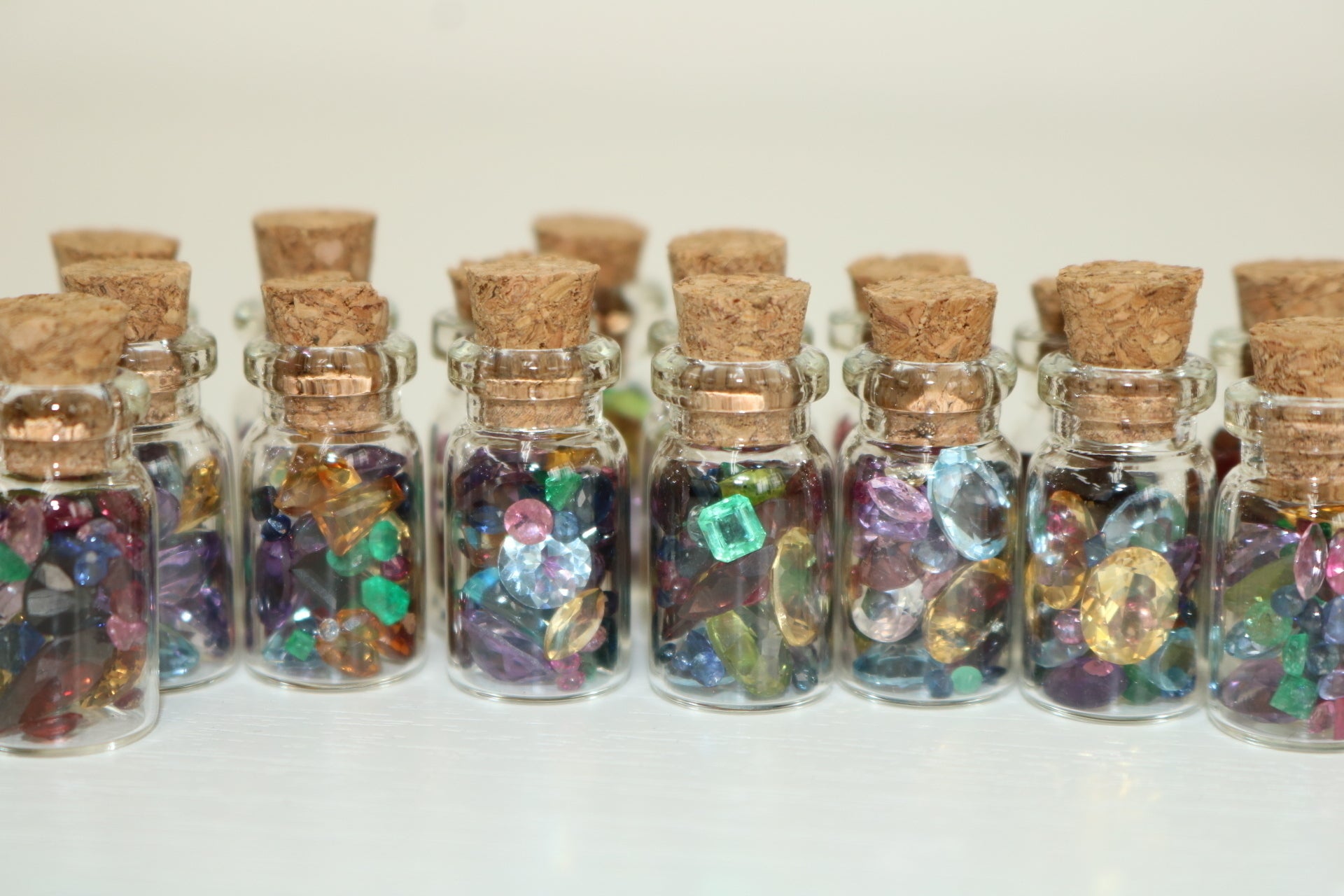エメラルド、サファイア、ルビー、スピネル、フローライト、アイオライト、キャッツアイ、トパーズ、アクアマリン、ブルートパーズ、ローズクオーツ