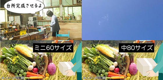 サイズは60サイズと80サイズで箱はそこまで大きくはありませんが(特に60サイズは大きめの野菜は入らないと思われますが...)こだわりの生産物をお届けしますので、よろしくお願いします(>ω<)