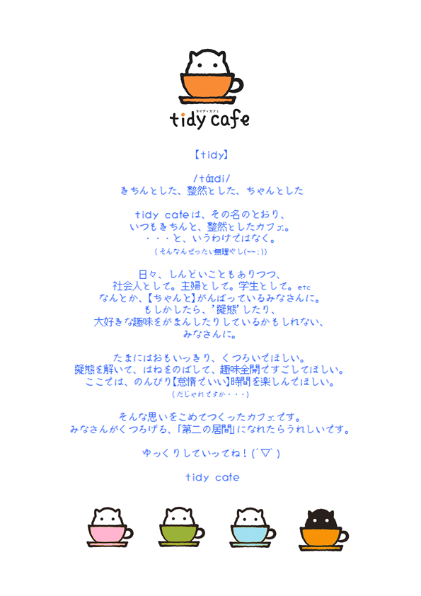 当プロジェクトをご覧くださってありがとうございます。tidycafe店主です。
